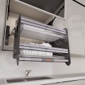 Giá bát đĩa nâng hạ cơ, bằng nhôm màu titan + rổ inox 304 GL06AT