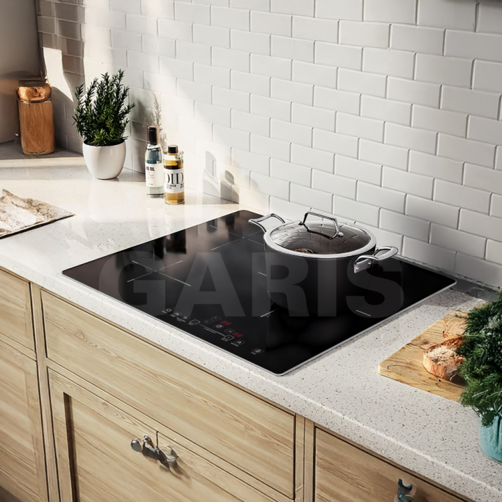 Bếp từ 3 vùng nấu, kính vát 4 cạnh, viền hợp kim nhôm Aviation Shield G1116