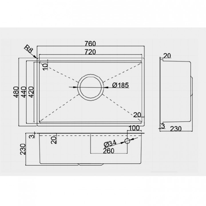 | GS11.76D | 1 | D760*R480*S230 | 720*420 | Âm bàn đá | 720*440 |