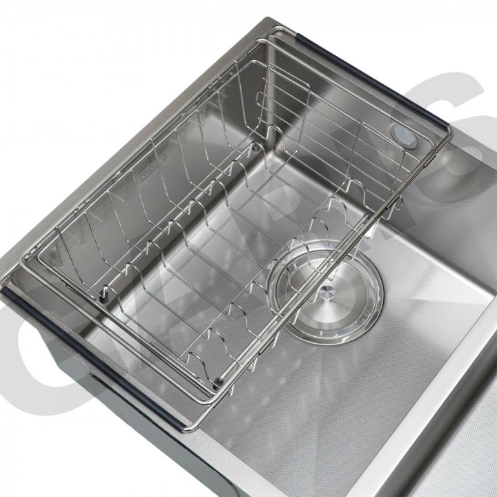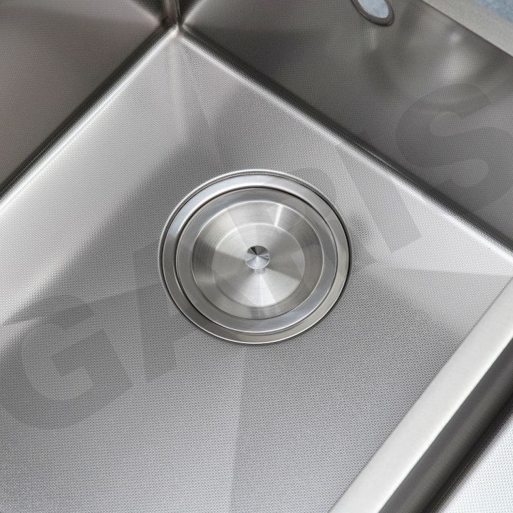 Lòng chậu sâu 220mm giúp người dùng thoải mái đựng thực phẩm, bát đĩa, dụng cụ làm bếp,... trong quá trình dọn rửa và chế biến. Thành chậu cao hạn chế tối đa nước bắn ra xung quanh. Đáy chậu rửa dạng vát hình chữ X giúp tự động thoát nước nhanh chóng. Thêm vào đó là bộ xi phông có vai trò thoát nước thải, ngăn mùi hôi và chống rò rỉ. Giúp không gian nấu nướng luôn thơm tho, sạch sẽ. Từ đó mang lại những giây phút thăng hoa trong gian bếp. Ngoài ra, chậu rửa còn đi kèm rổ ráo nước bằng inox 304. Nhờ vậy, người dùng có thể sắp xếp bát đĩa, thực phẩm vừa rửa vào rổ một cách thuận tiện, dễ dàng. Vừa tiết kiệm thời gian, vừa tối ưu diện tích bàn bếp.Kiểu dáng sang trọng