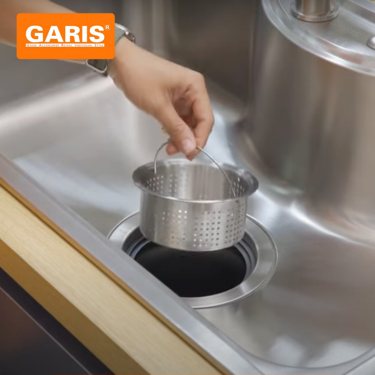 Hệ thống lọc rác hiệu quả: Hệ thống lọc rác nhiều lớp trên chậu rửa bát 1 hố loại to của GARIS sẽ giúp ngăn chặn tới từng hạt rác nhỏ nhất, ngăn chúng lọt xuống xi phông - đảm bảo quá trình thoát nước diễn ra thông suốt, không bị tắc nghẽn trong nhiều năm sử dụng.