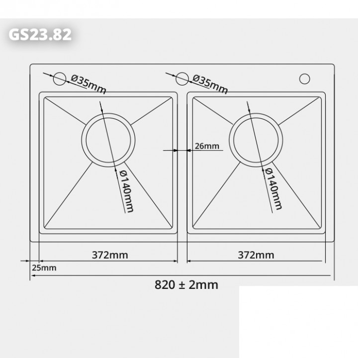 | GS23.82 | D820 x R480 x S230 | 372*382 | dương bàn đá hoặc bán âm |