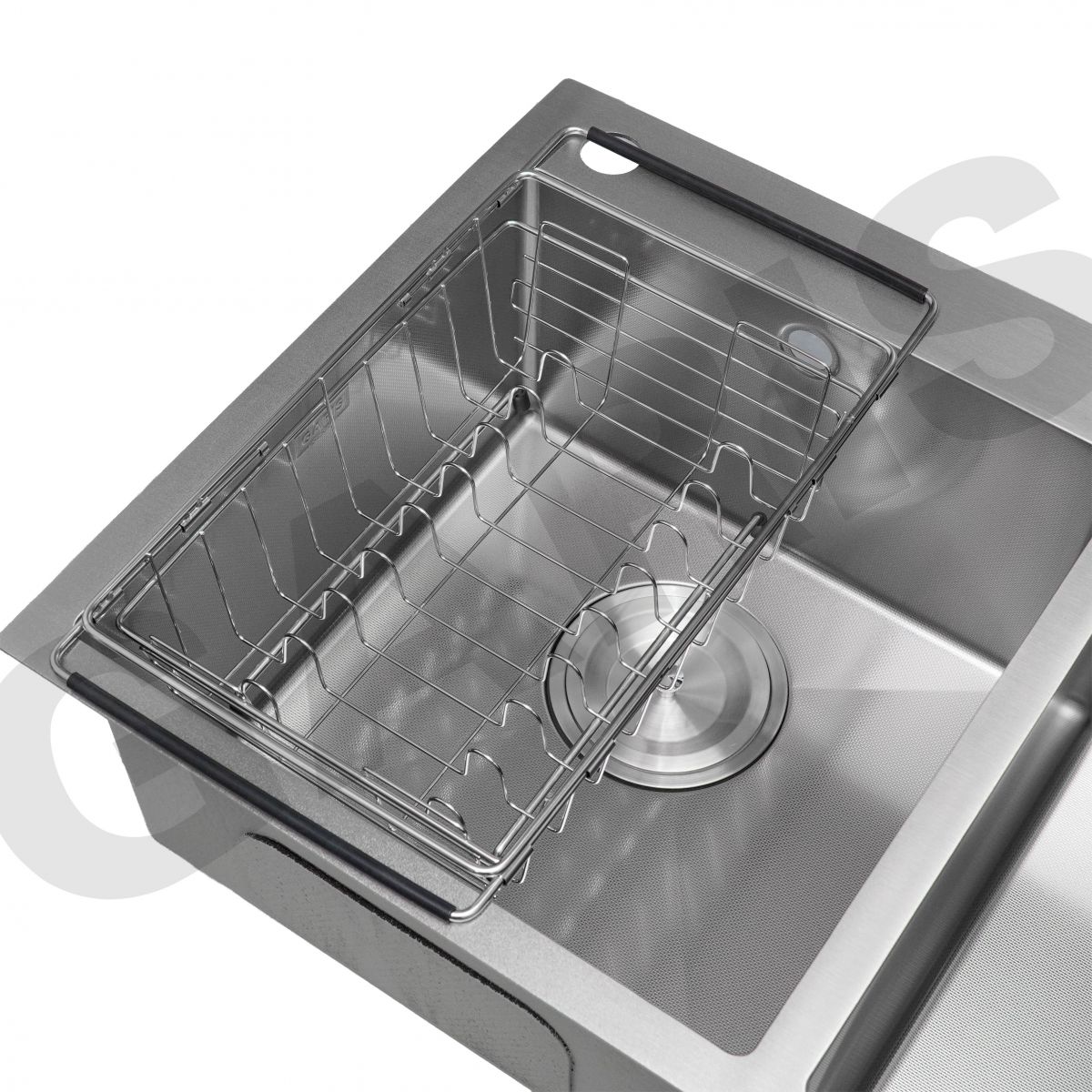 - Chậu rửa được làm từ chất liệu Inox 304, một loại inox cao cấp và chất lượng. Inox 304 có khả năng chống ăn mòn, chống oxi hóa và chống nấm mốc, giúp chậu rửa luôn sáng bóng và bền bỉ theo thời gian. Ngoài ra, Inox 304 còn có khả năng chống cháy và chống dính, giúp dễ dàng làm sạch và vệ sinh chậu rửa.