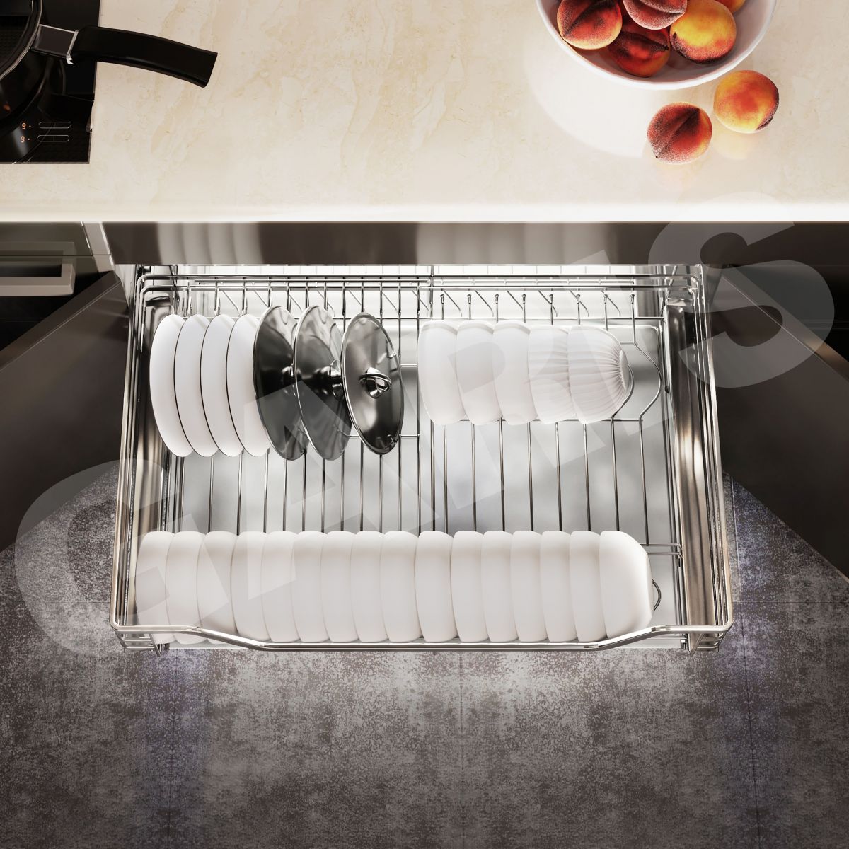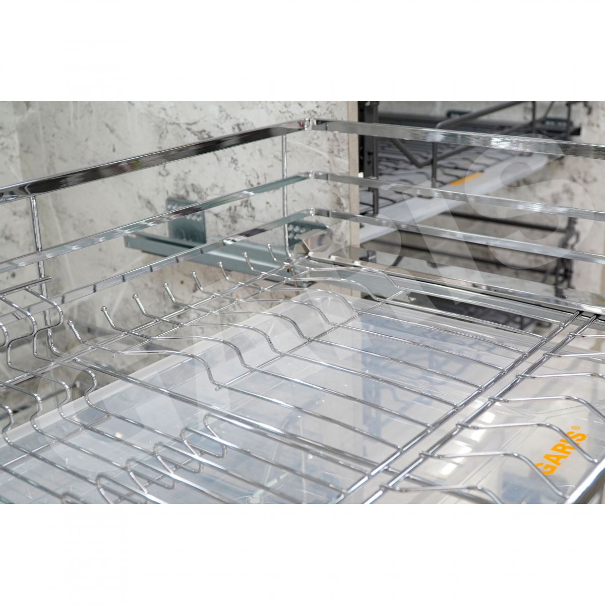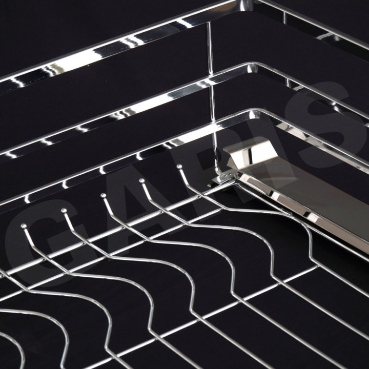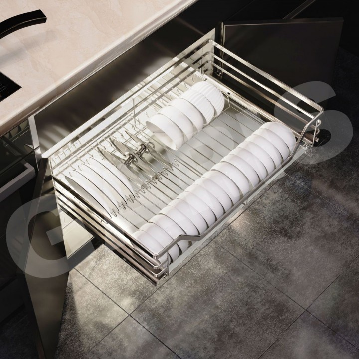 Phụ kiện tủ bếp là loại phụ kiện không thể thiếu trong căn bếp của mỗi gia đình. Giá bát đĩa, nan vuông, bề mặt mạ chrome, dùng cho cánh mở thuộc dòng phụ kiện giá để bát đĩa cao cấp của hãng Garis. Thiết kế của sản phẩm tối giản nhưng rất sang trọng và hiện đại, nổi bật với các thanh inox 304 sáng bóng không tì vết.