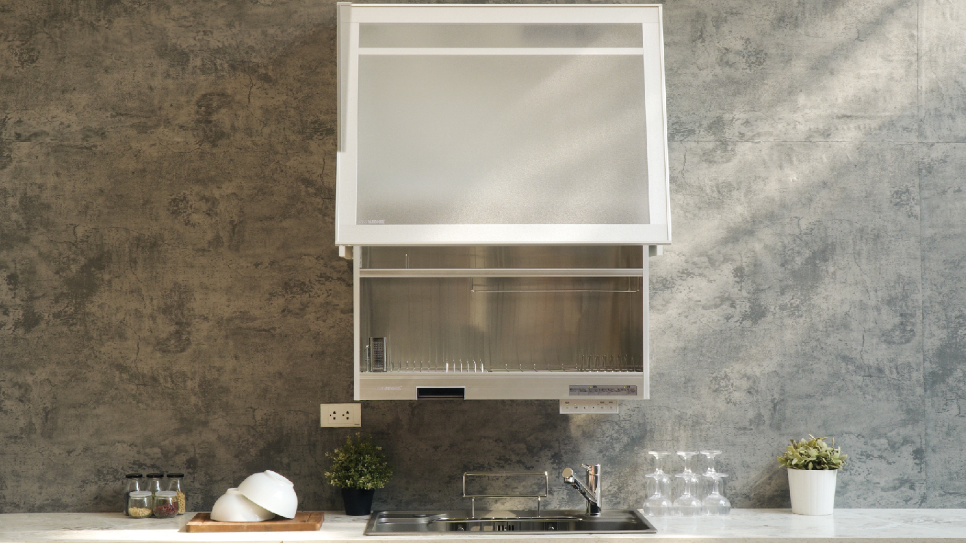 8. Sản phẩm được trang bị hệ thống cánh thông minh, đóng/mở tự động khi lên xuống, giúp bạn lấy và đặt bát đĩa mà không cần chạm tay vào cánh. Đặc biệt, khách hàng sẽ không phải mua thêm tay nâng, giúp tiết kiệm hàng triệu đồng. Ngoài ra, ngay cả khi mất điện, bạn vẫn có thể lấy bát đĩa một cách dễ dàng.