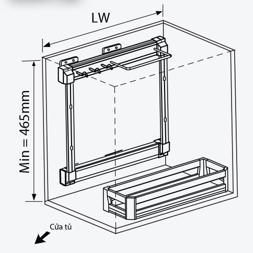 Inox hộp, cánh mở, ray bắt hồi tủTải trọng: 25kg