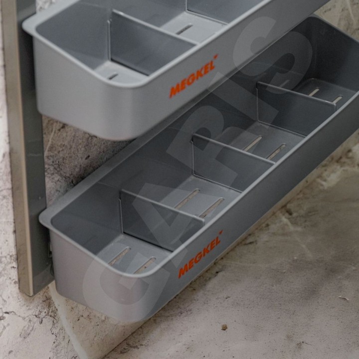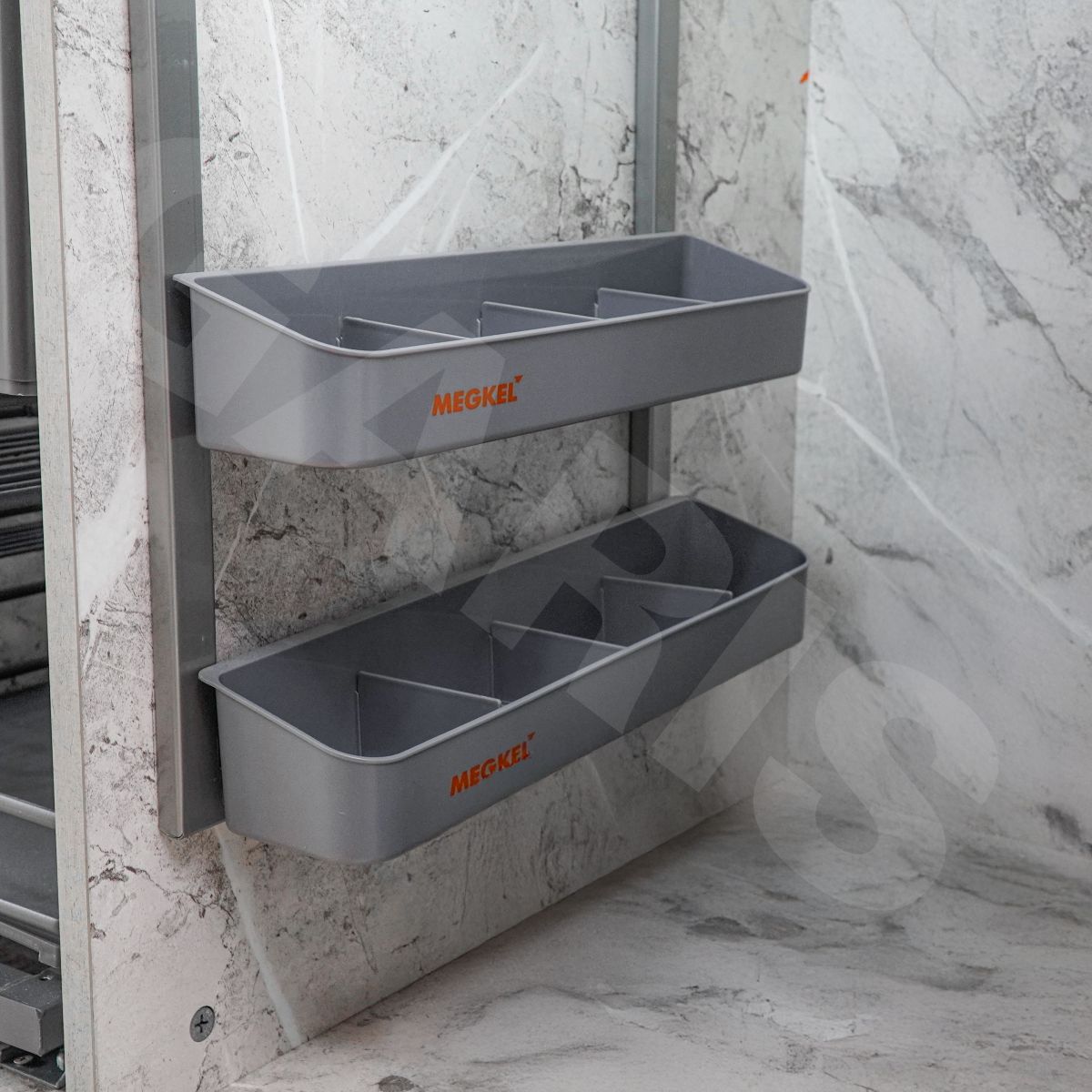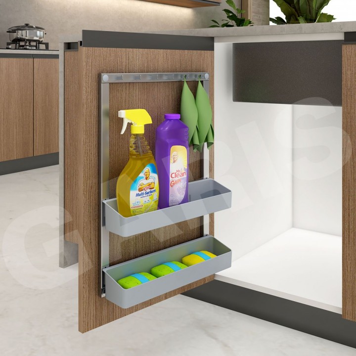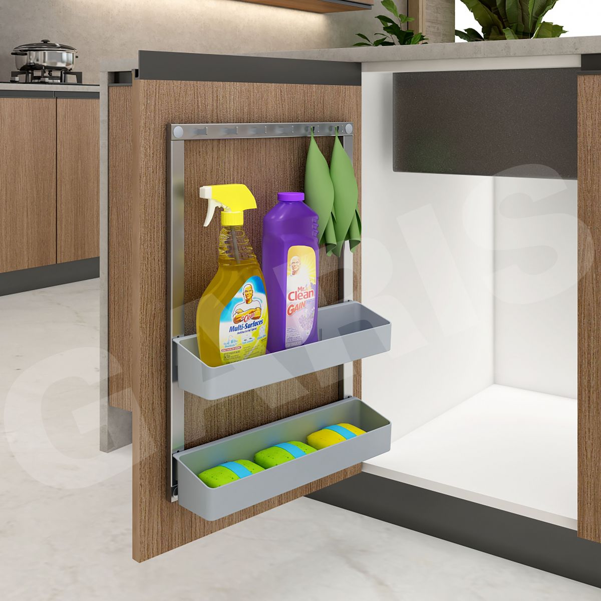 Giá để chất tẩy rửa MU05.40 Sản phẩm bằng chất liệu inox, thép và nhựa. Thiết kế thông minh giúp chai lọ sẽ không bị nghiêng đổ khi đóng/mở cánh tủ, dễ dàng lau chùi vệ sinh. Kích thước nhỏ gọn giúp tối ưu không gian bếp.