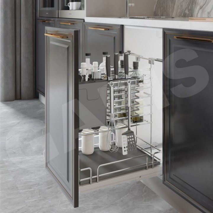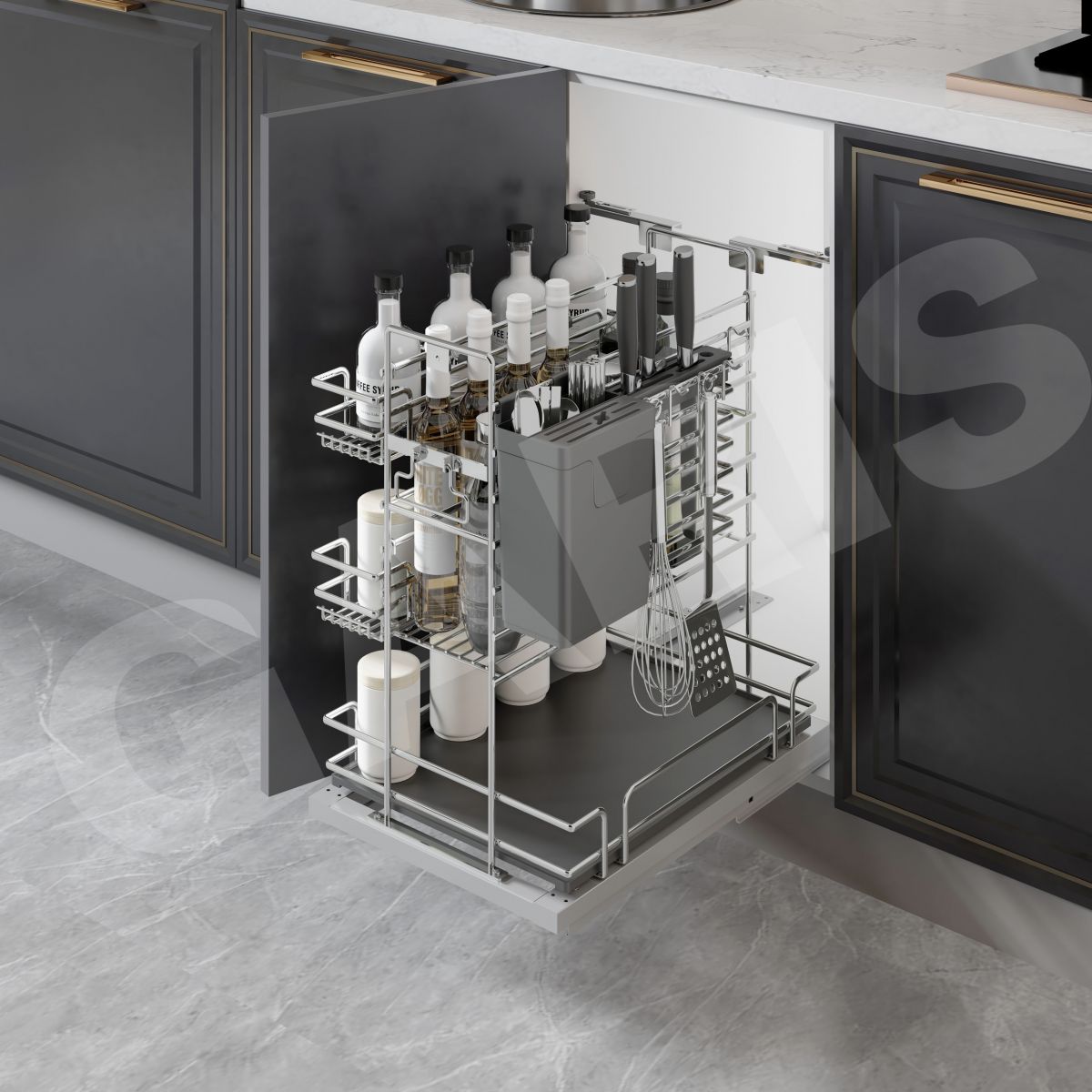 Gợi ý kết hợp phụ kiện khi thiết kế căn bếp : Căn bếp sẽ đẹp hơn khi kết hợp giá dao thớt, gia vị, chai lọ MM02V với các sản phẩm khác trong MV Series.