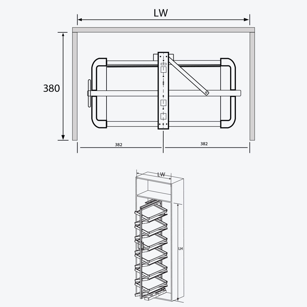 | GW24 | R720* S360* C(1910 - 2110) | 800 | Chiều rộng lọt lòng (LW) ≥ 764 Chiều cao lọt lòng (LH): 1910 - 2110 |