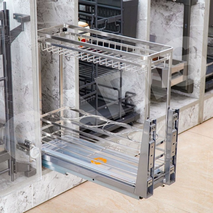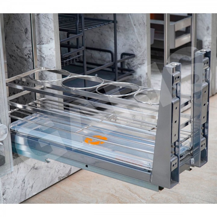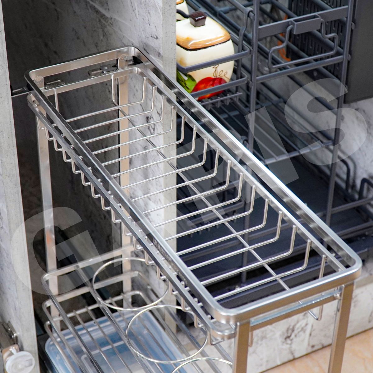 Xuất phát từ những nỗi trăn trở của các bà nội trợ mỗi khi vào bếp các nhà thiết kế của hãng Garis đã tạo nên sản phẩm giá gia vị, chai lọ, nan vuông, bề mặt điện hóa, dùng cho cánh kéo. Sản phẩm giá gia vị, chai lọ nan vuông, bề mặt điện hóa (electrolized), dùng cho cánh kéo của Garis hướng tới sự tiện nghi cho người sử dụng, sự sang trọng, hiện đại cho căn bếp của gia đình bạn.Khung thép phủ nano, rổ inox 304 xước mờ (điện hóa)