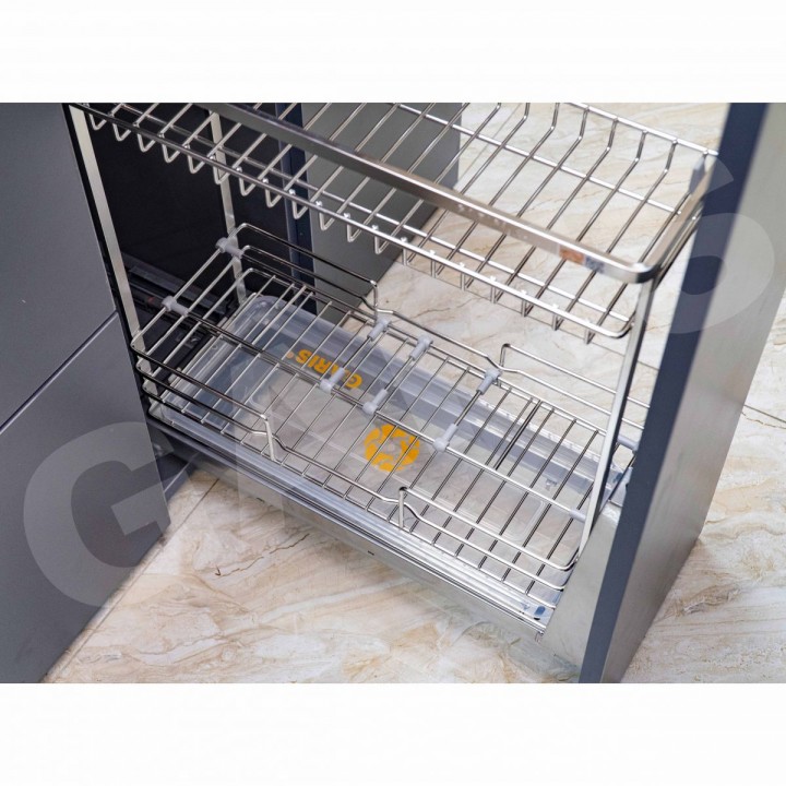 Kèm theo ray âm giảm chấn GARIS (bắt đáy tủ), 1 khay hứng nước, giấy chứng nhận inox 304