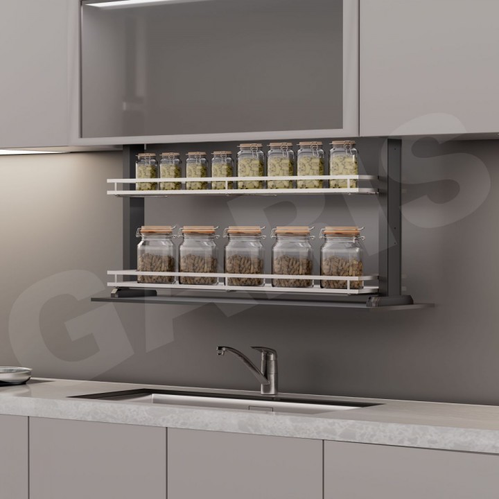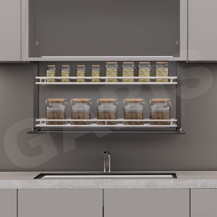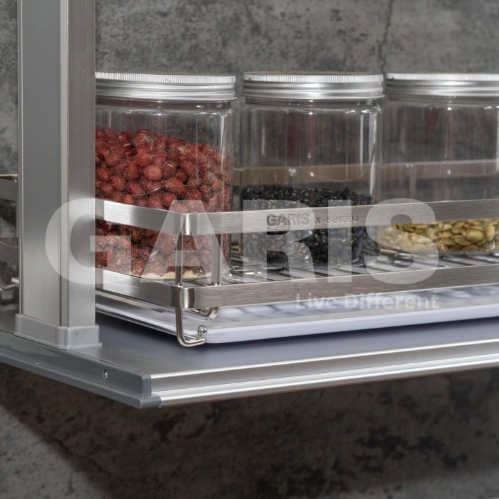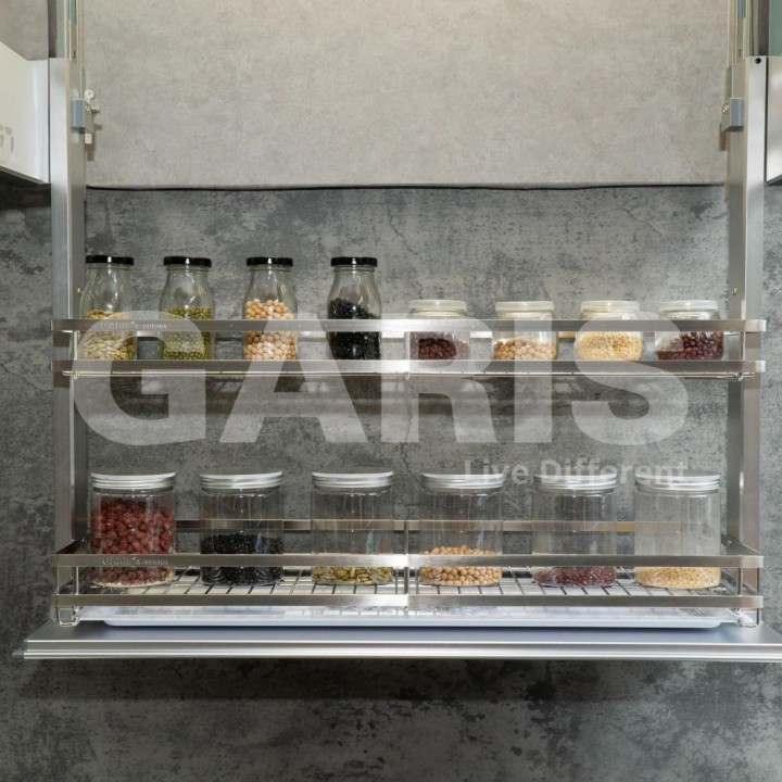 Giá gia vị nâng hạ điện, khay inox 304, đáy dạng nan GL05X cảm ứng chạm
