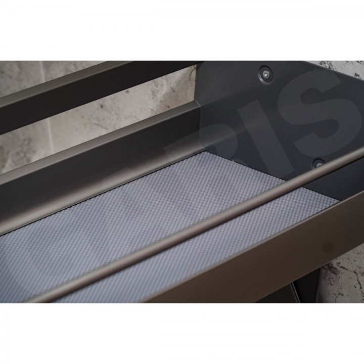 Kết cấu chắc chắn, khay trên có thêm thanh tròn viền phía trên chống rơi đồ gia vị, giúp đồ vật được bảo quản an toàn. Tay nắm kéo xuống được thiết kế đặc biệt, phù hợp với thao tác kéo xuống của người dùng Giá gia vị nâng hạ GL05.702/802 có bổ sung thêm tấm lót chống trượt, được làm từ chất liệu cao su cao cấp.
