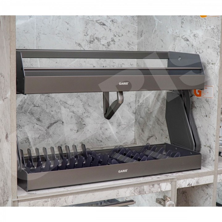 Giá gia vị GL05.702/802 bao gồm một tầng, giúp chủ nhà có thể tận dụng được không gian tủ bếp trên một cách hiệu quả. Để tăng tính thẩm mỹ, quý khách hàng có thể lựa chọn mua thêm giá GL05.701/801 ngăn dưới - tích hợp đựng được nhiều đồ dùng hơn.Giá gia vị nâng hạ GL05.702/802 có khả năng lên xuống cực kỳ linh hoạt với góc mở > 90°, Cơ cấu chuyển động êm ái, trơn tru, sử dụng piston cao cấp với trợ lực cường độ lớn, giúp khách hàng dễ dàng sử dụng, giảm lực tay đẩy lên - nâng hạ nhẹ nhàng.. Sản phẩm thiết kế kiểu dáng hiện đại, khay nhôm, phủ fluorocarbon, màu ghi xám dễ phối với các màu tủ trong bếp.