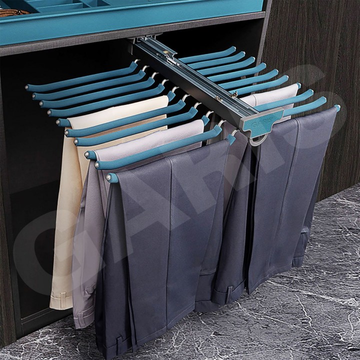 Giá treo quần âu đôi, bắt trần tủ, bằng thép, viền nhựa và nỉ màu xanh lục bảoTải trọng: 15kg