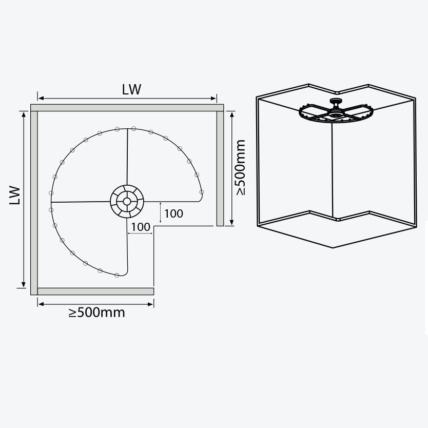 Giá xoay, treo trần góc tủ quần áo, 1 tầng GW32R