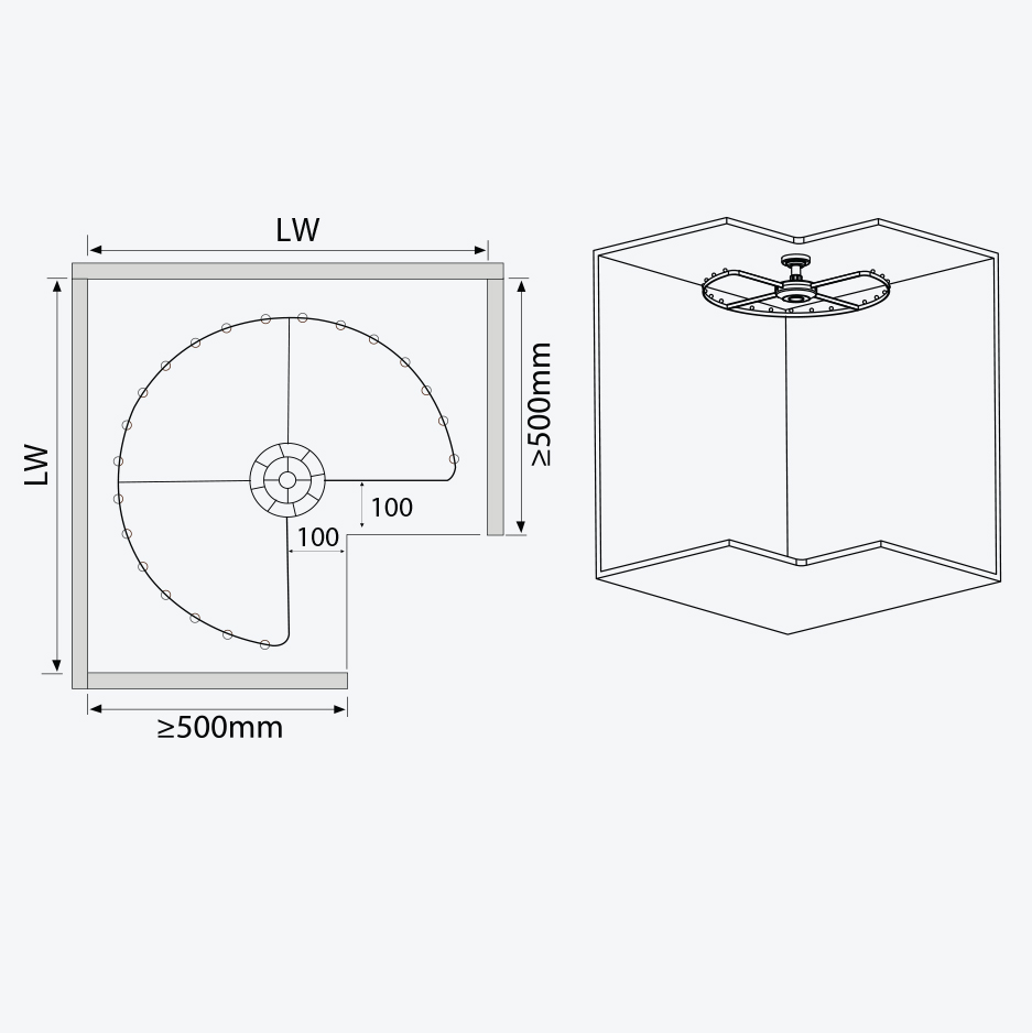 Giá xoay, treo trần góc tủ quần áo, 1 tầng GW22
