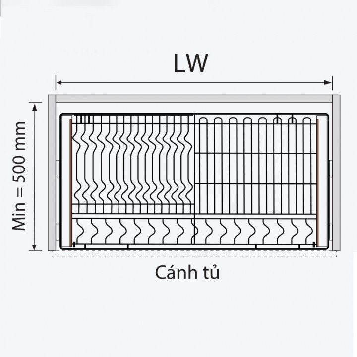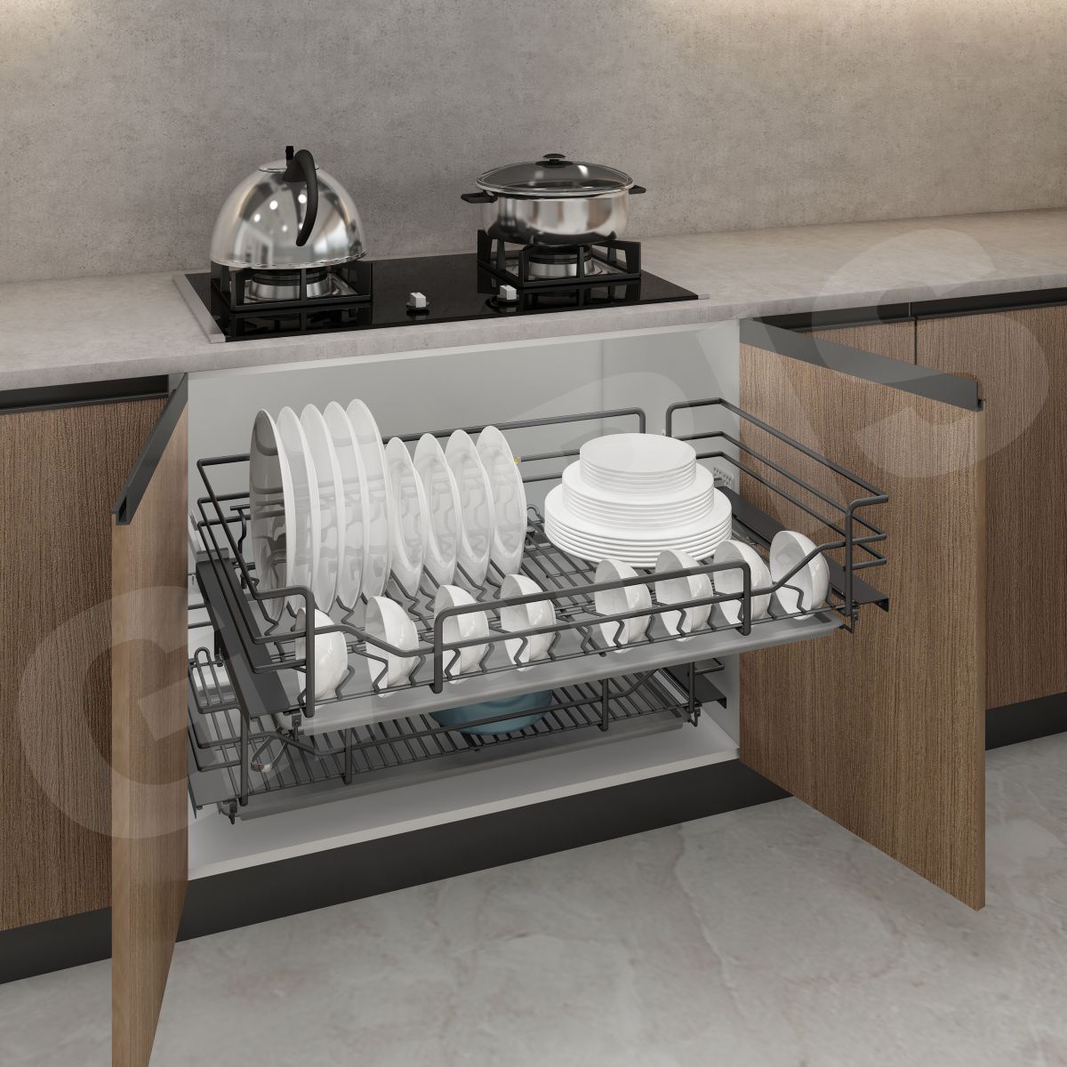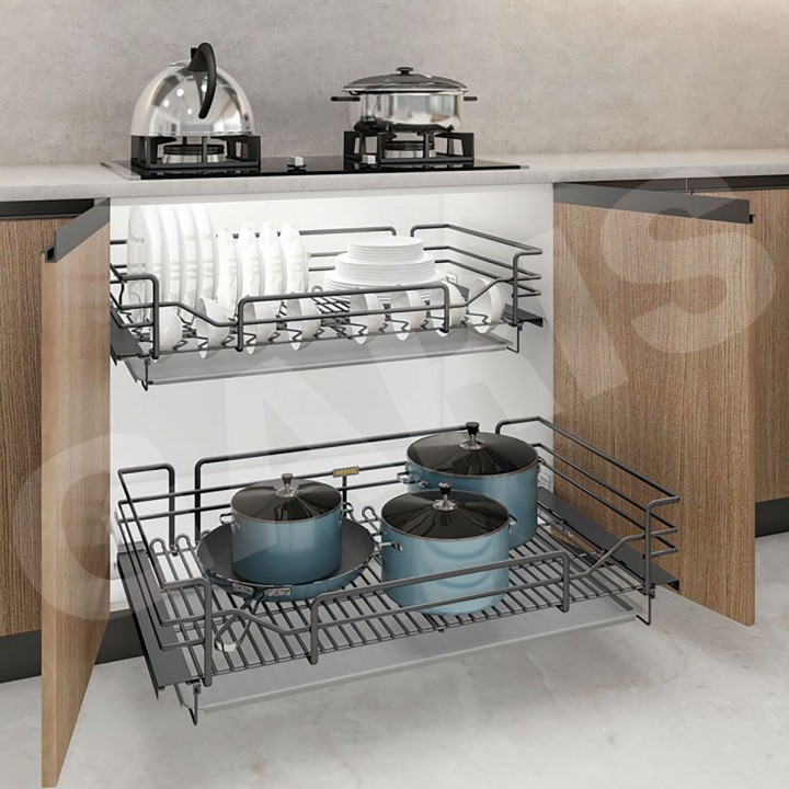 Giá xoong nồi + bát đĩa, rổ nan oval, cánh mở hoặc kéo MD04N