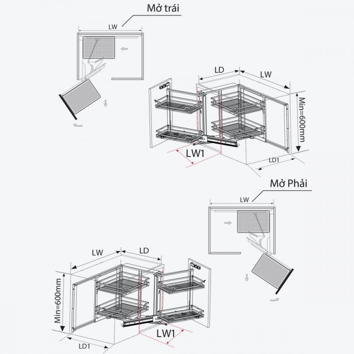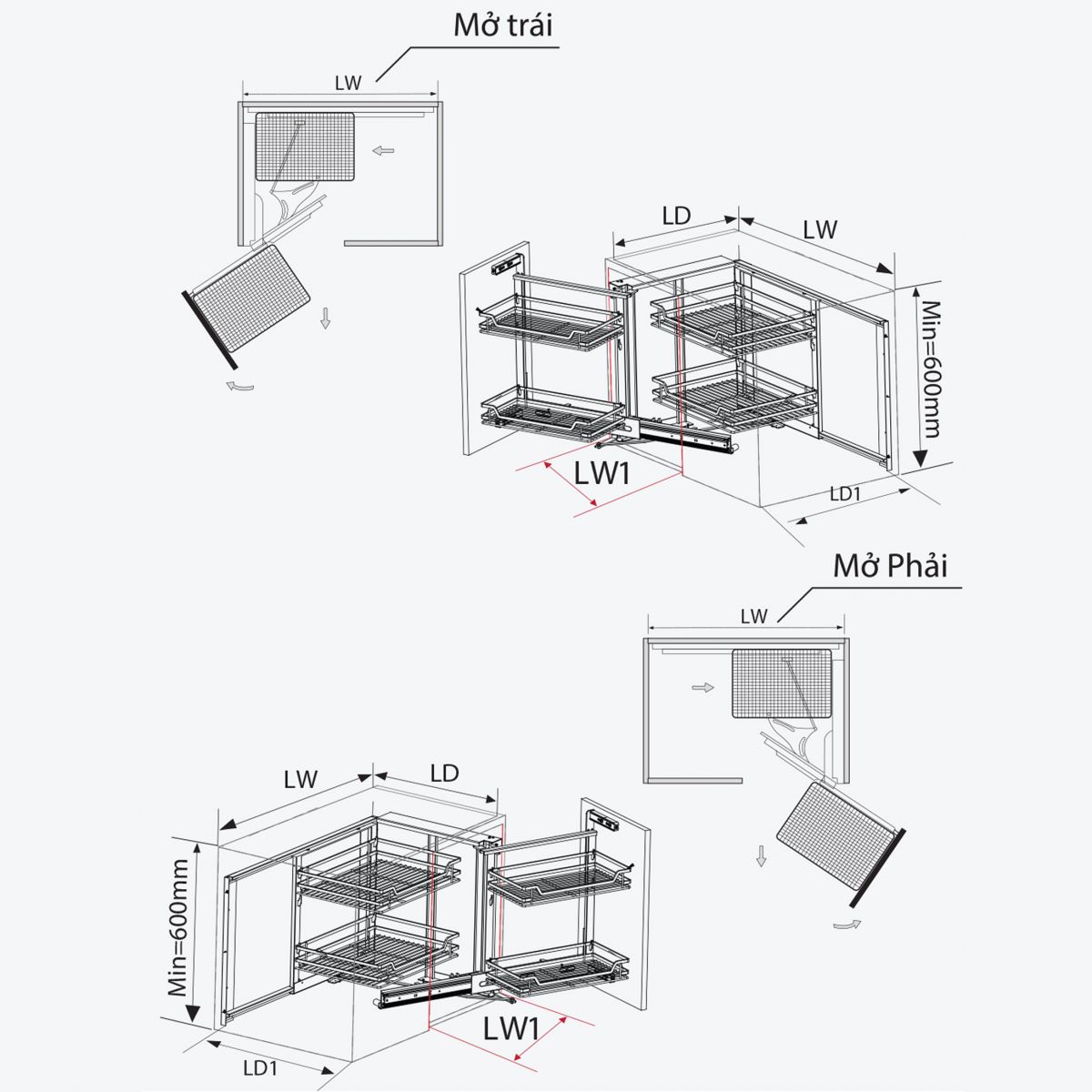 Hệ góc liên hoàn duy nhất tại Việt Nam lắp vừa cánh tủ rộng 350mm trở lên