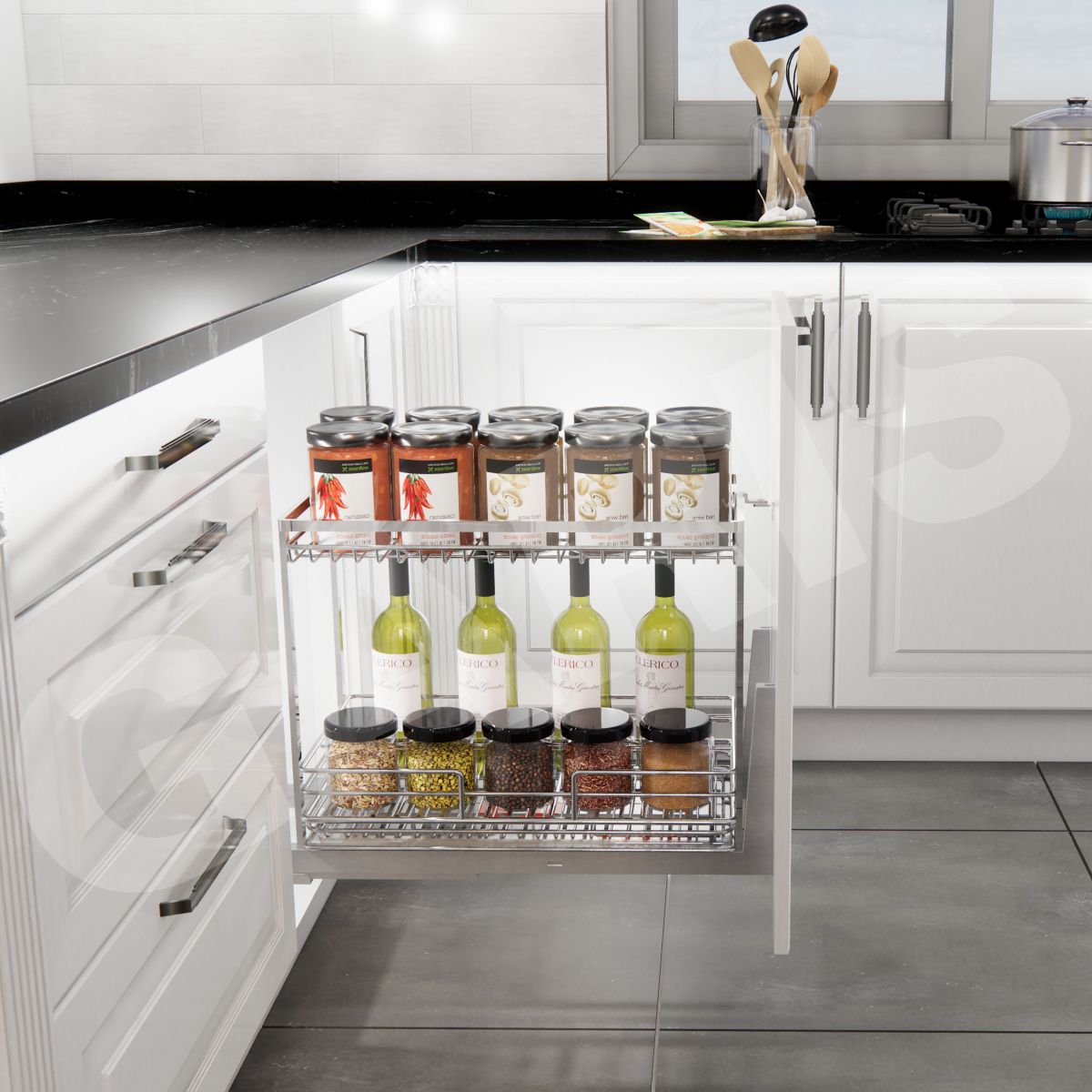 Gợi ý kết hợp phụ kiện khi thiết kế căn bếp : Căn bếp sẽ đẹp hơn khi kết hợp giá chai lọ GK02E với các sản phẩm khác trong BASE Series