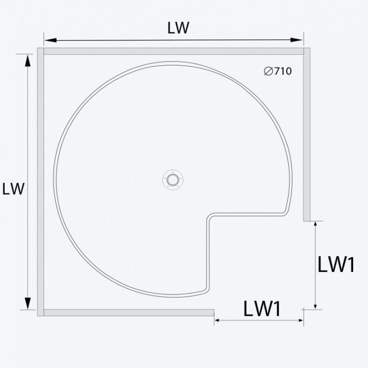 | GS03. 80N | 3/4 (270°) | Ø710 | Chiều rộng tủ (LW) ≥ 750 Khoảng hở cánh (LW1) ≥ 370 Chiều cao: 555 - 775 |