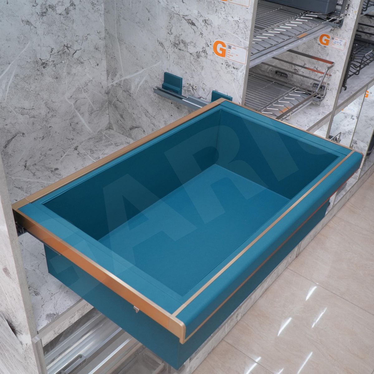 Ngăn kéo để đồ gập, khung nhôm, bọc da GW02E