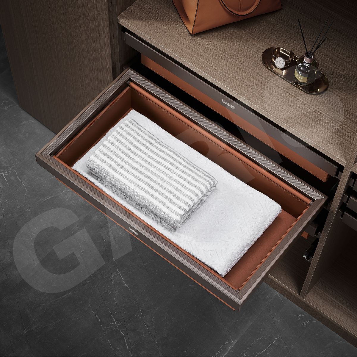 Ngăn kéo để đồ gập khung nhôm, bọc da GW02R