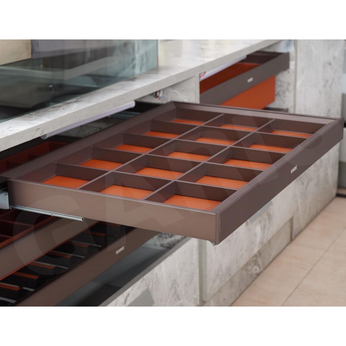 Ngăn kéo đựng đồ trang sức, phụ kiện thời trang, bằng nhôm + bọc da màu đỏ CarnelianTải trọng 15kg.