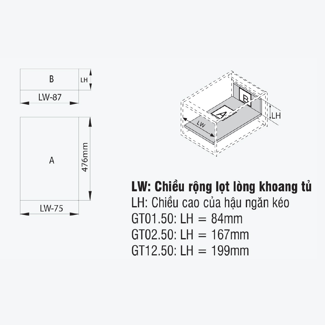 | GT12. 50 | Ray hộp Gigabox 2 mặt thành cao vách kính | 500 mm | Bộ ray GT12.50 gồm: - 2 ray hộp trái/phải - 2 vách kính trắng 2 bên | Bộ | 2.135.000 |
