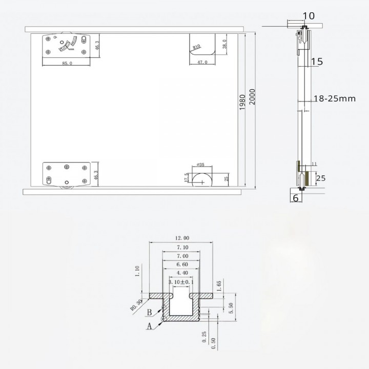 Ray trượt cửa lùa thông dụng GR67 - cánh lọt khung