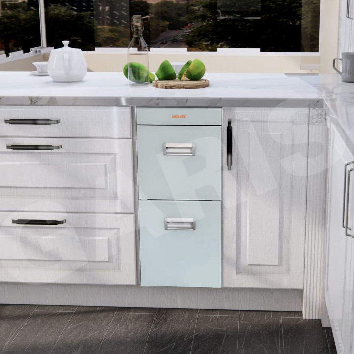 Thùng gạo mặt kính trắng xanh, 02 khoang, viền nhôm vát cạnh 20kg MR07.30W mặt kính trắng