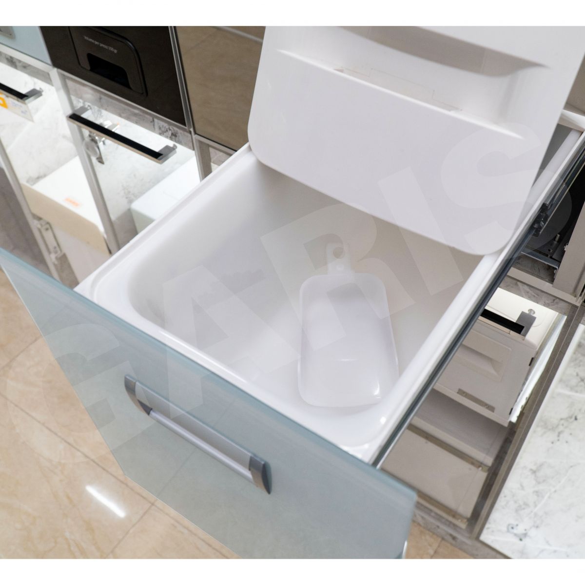 - Thùng gạo được thiết kế với mặt thùng thay thế cho cánh tủ, giúp tiết kiệm không gian và tạo sự gọn gàng cho căn bếp. Mặt thùng được bắt cố định, đảm bảo sự ổn định và an toàn khi sử dụng.