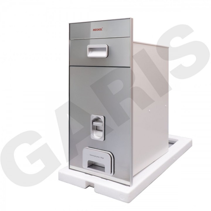 Thùng gạo được thiết kế 2 khoang với mặt kính bắt mắt. Tổng dung tích của thùng có thể chứa tới 20kg gạo. Gạo được lấy ở mặt trên, mỗi khoang thùng có nắp riêng biệt để chống côn trùng