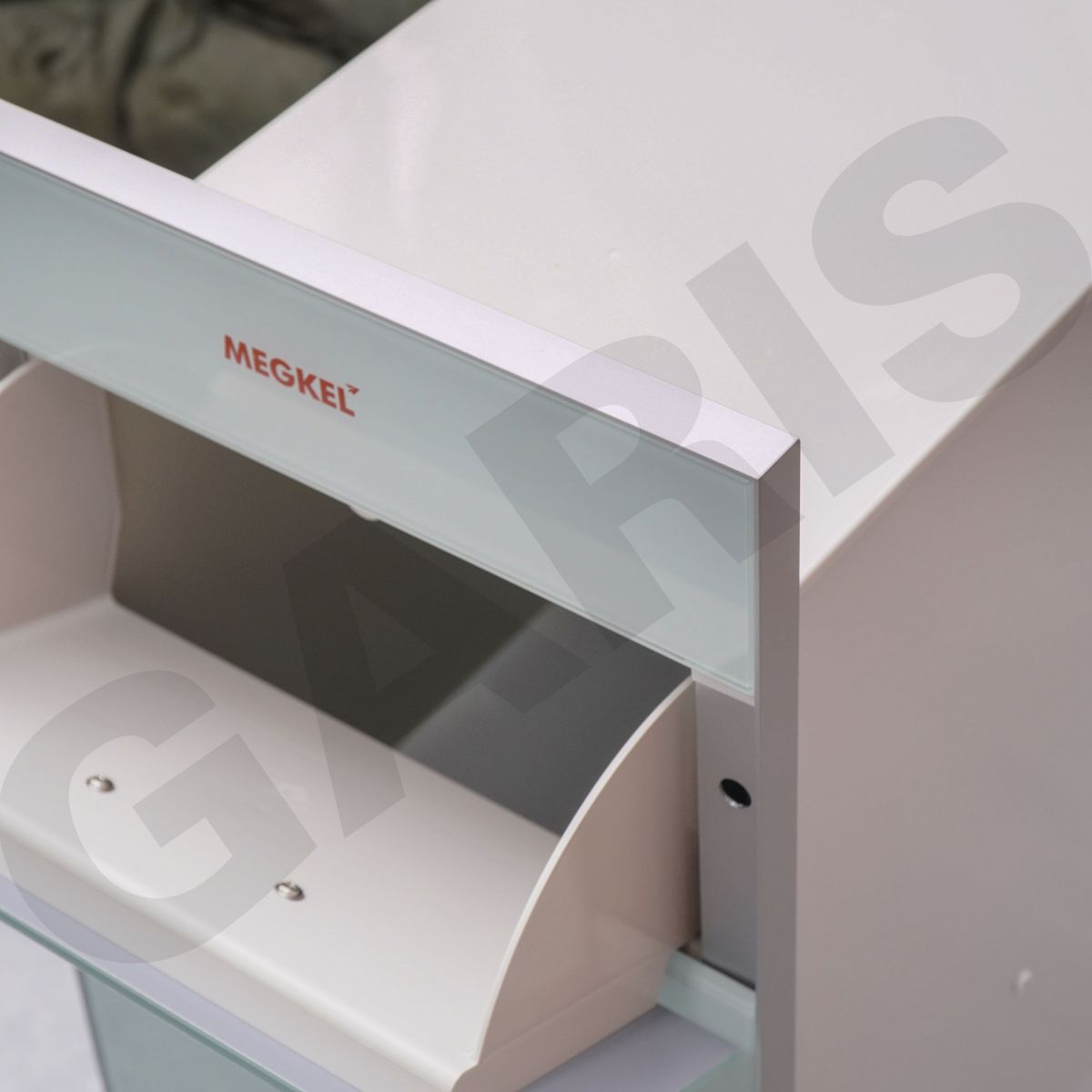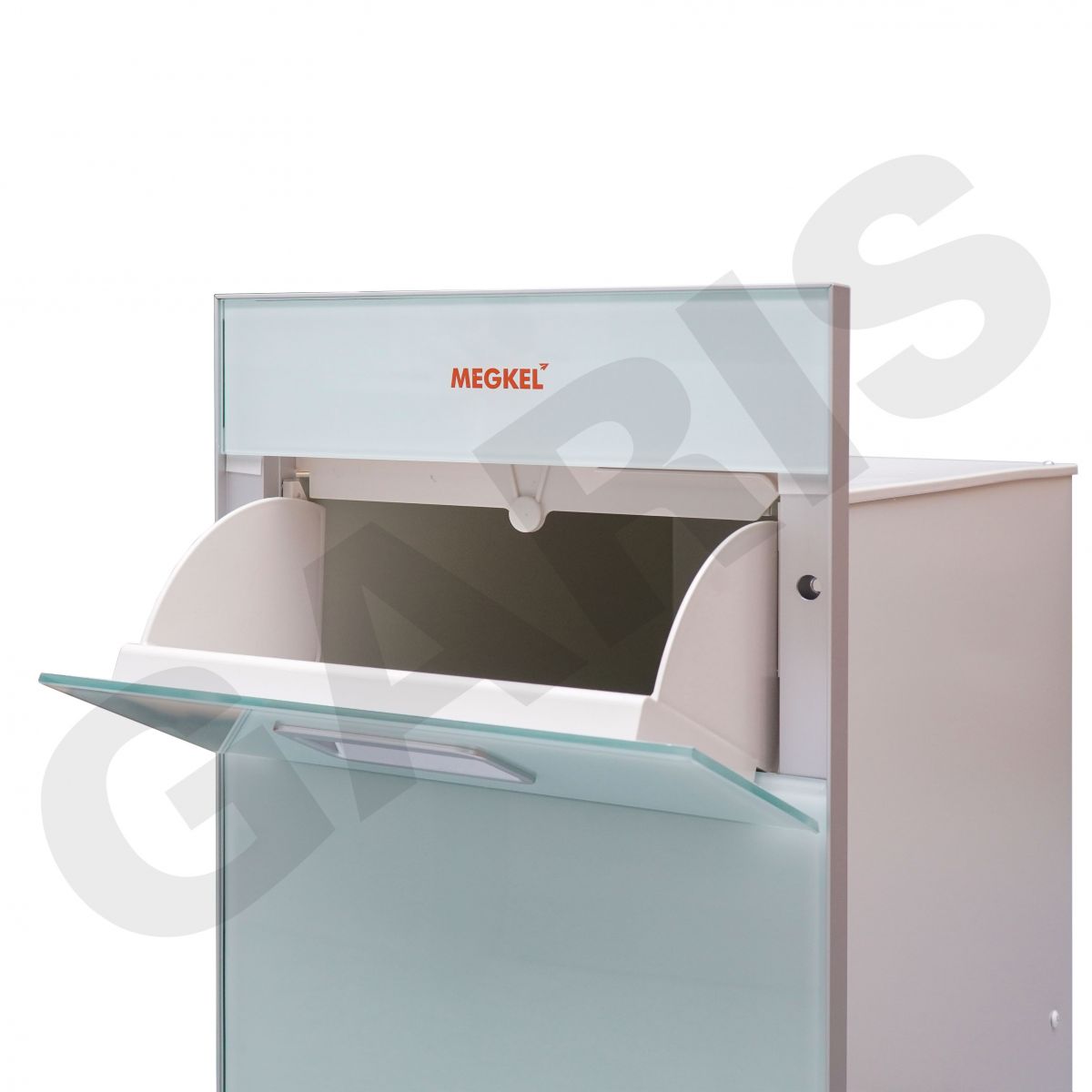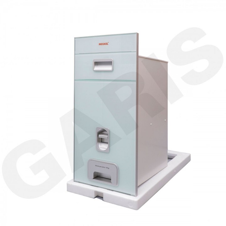 Thùng gạo mặt kính trắng xanh, 01 khoang, viền nhôm vát cạnh, nút nhấn xuống 15kg MR06.30W