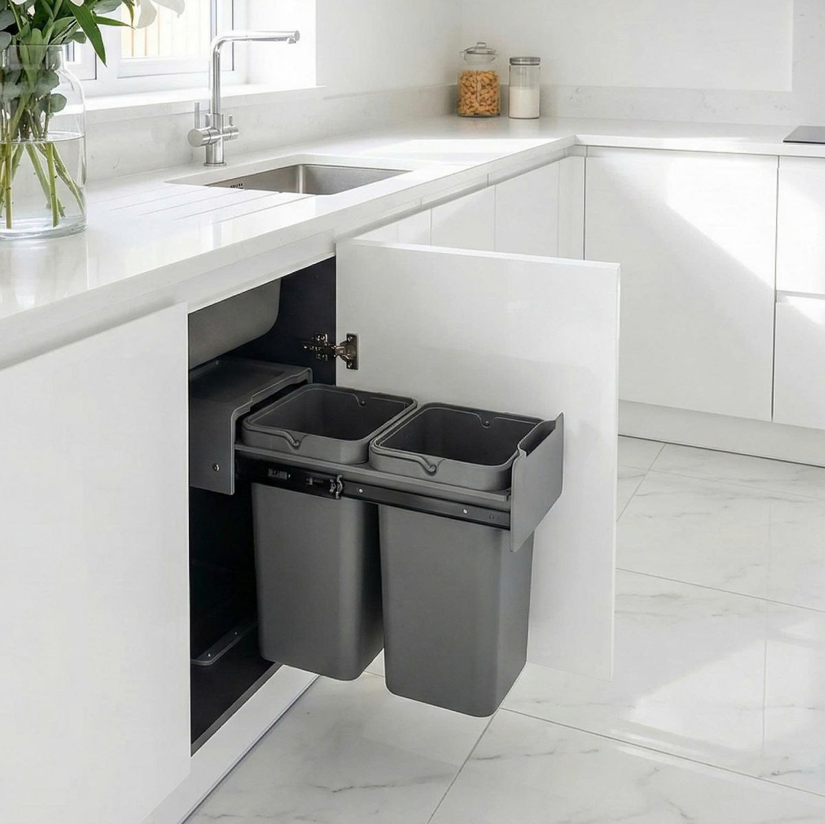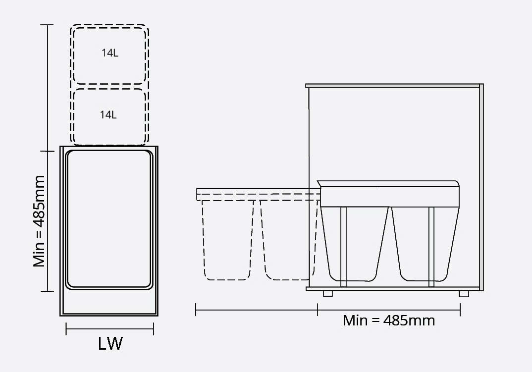 Thùng rác đôi màu ghi xám, 30L GW06.30G