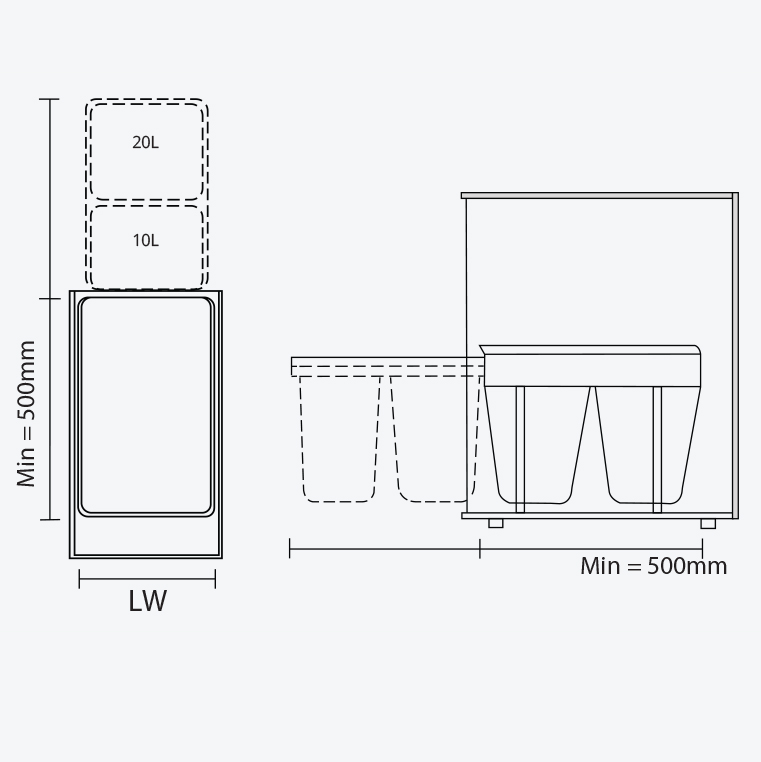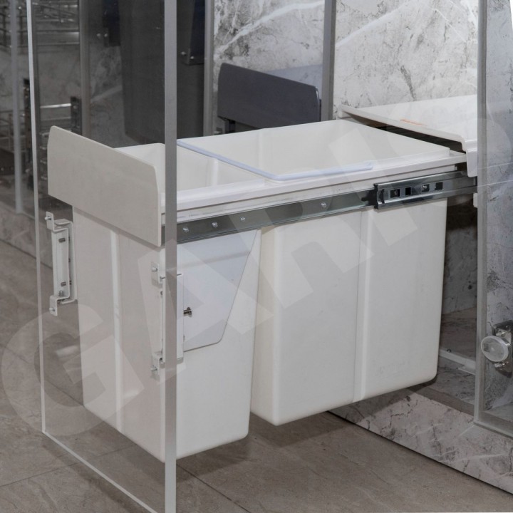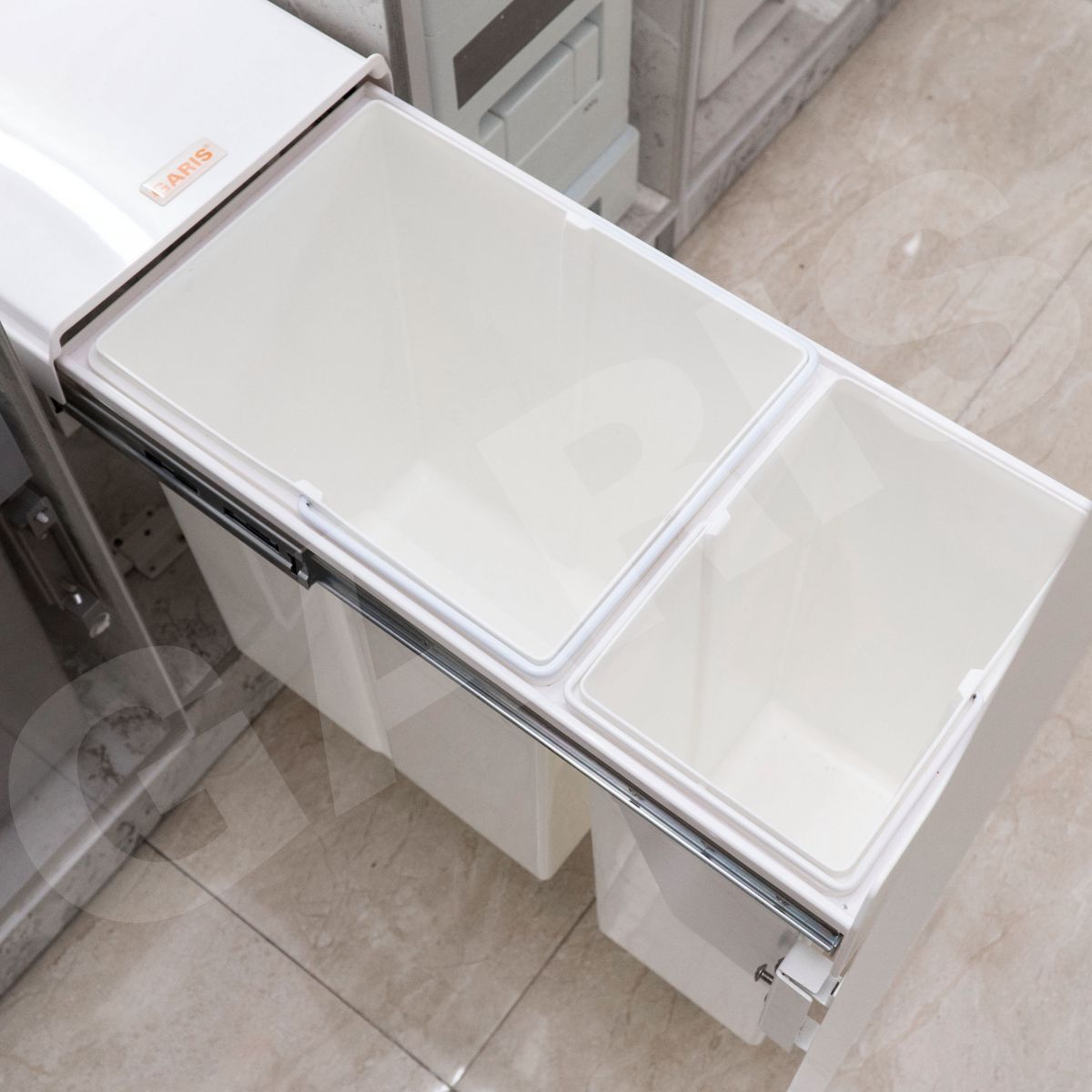 Thùng rác đôi 30L, cánh kéo (1*10L-1*20L), ray bi giảm chấnDung tích: 30 lít
