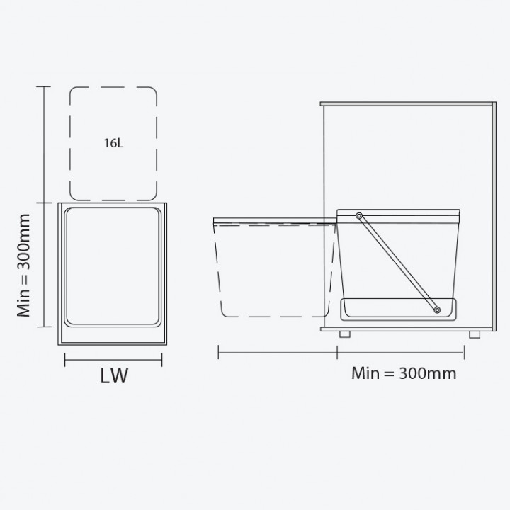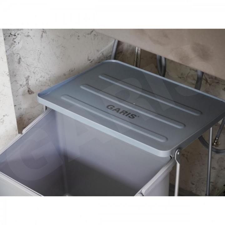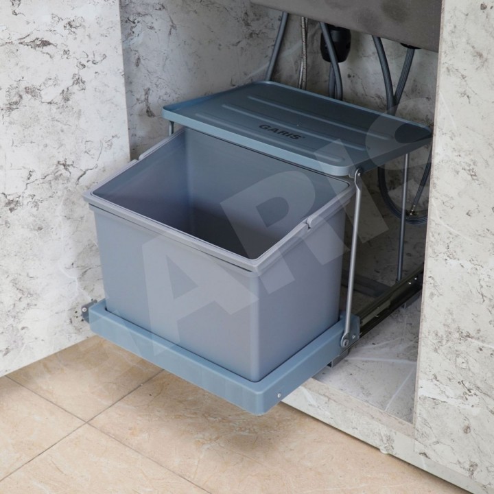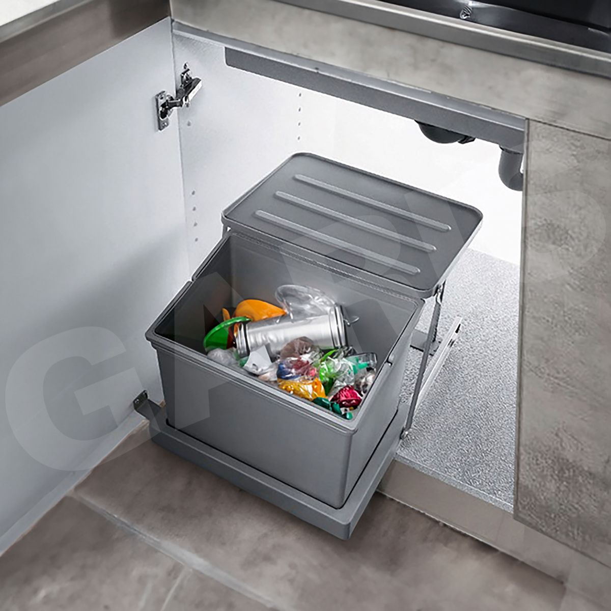 - Thùng rác được thiết kế để sử dụng cho tủ bếp dưới, giúp tiết kiệm không gian và tạo sự gọn gàng cho căn bếp. Cánh mở giúp dễ dàng đặt và lấy rác một cách thuận tiện và nhanh chóng.