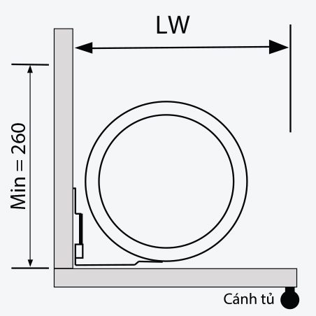 Đặc điểm: Sử dụng bắt cánh mở ≥ 400mm, chiều cao nắp mở 350mm, bắt liên kết vách tủ và cánh tủ