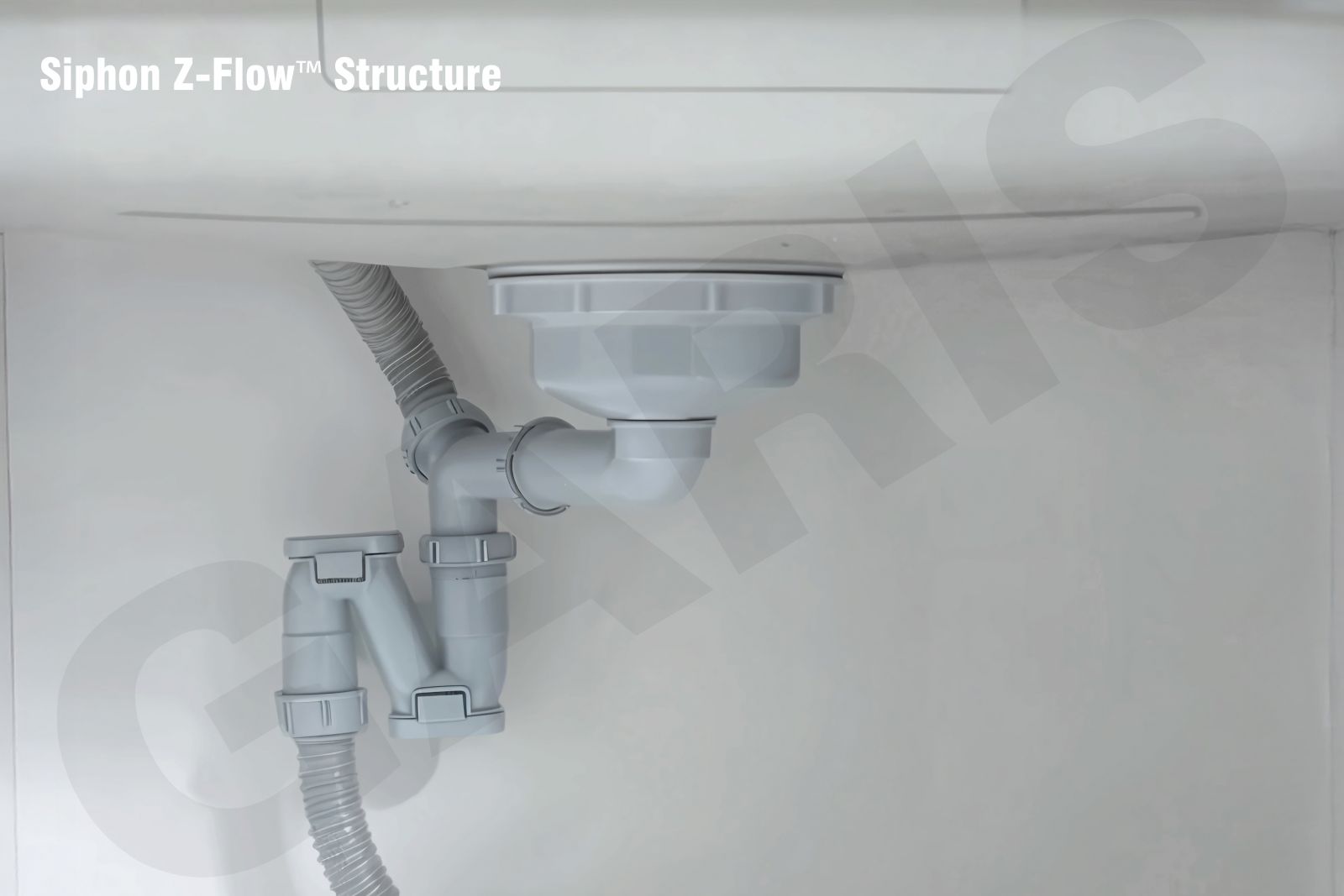 kiểu Nhật Siphon Z-Flow™ Structure kiểu Nhật, dễ dàng lắp đặt và vệ sinh, giúp tiết kiệm đến 35% không gian tủ bếp Hệ thống dẫn thoát và van chặn khí OdorGuard™, kèm cốc rác 4 lớp "khổng lồ" ngăn mùi hiệu quả, không lo nghẹt tắc |