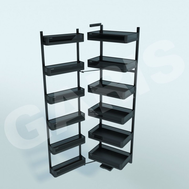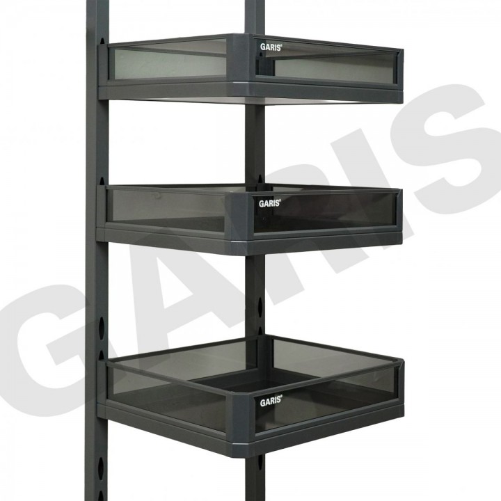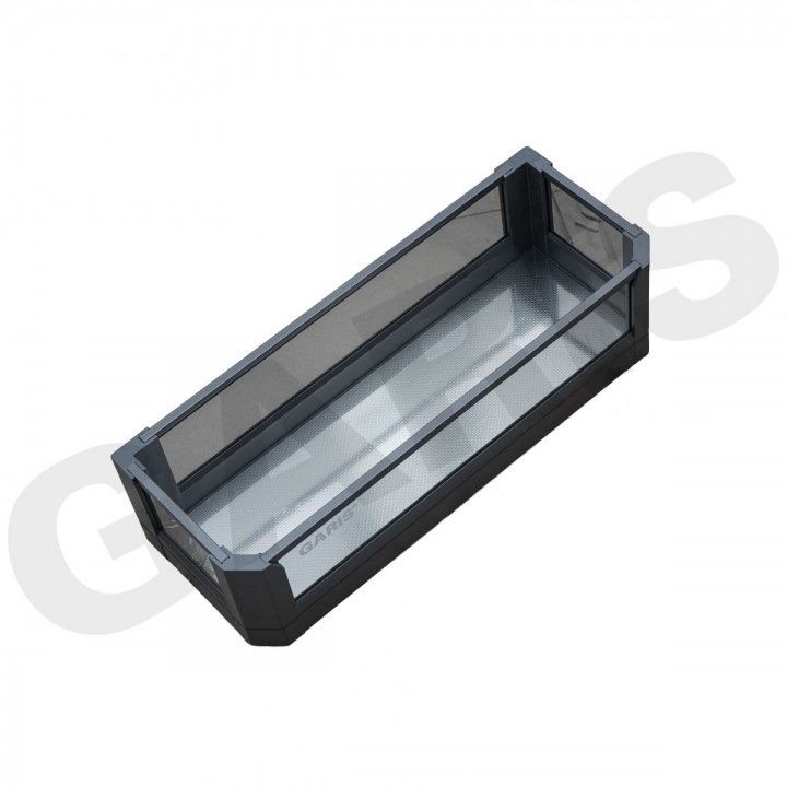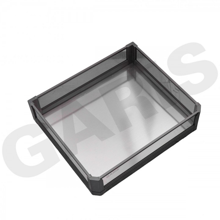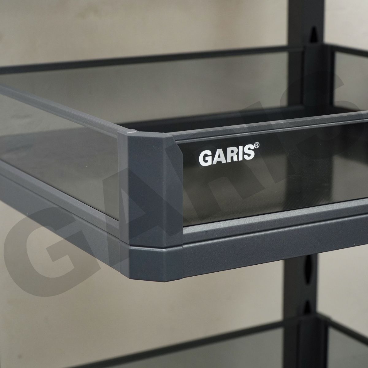 Tủ đồ khô 6 tầng, khay nhôm vách kính, cánh mở GS6.45D Đáy inox, vách kính bo viền nhôm, kính tối màu. Sử dụng 2 ray âm giảm chấn, êm ái, ổn định, tính bền bỉ cao, chịu tải lớn, lắp được cho cánh mở trái hoặc mở phải.