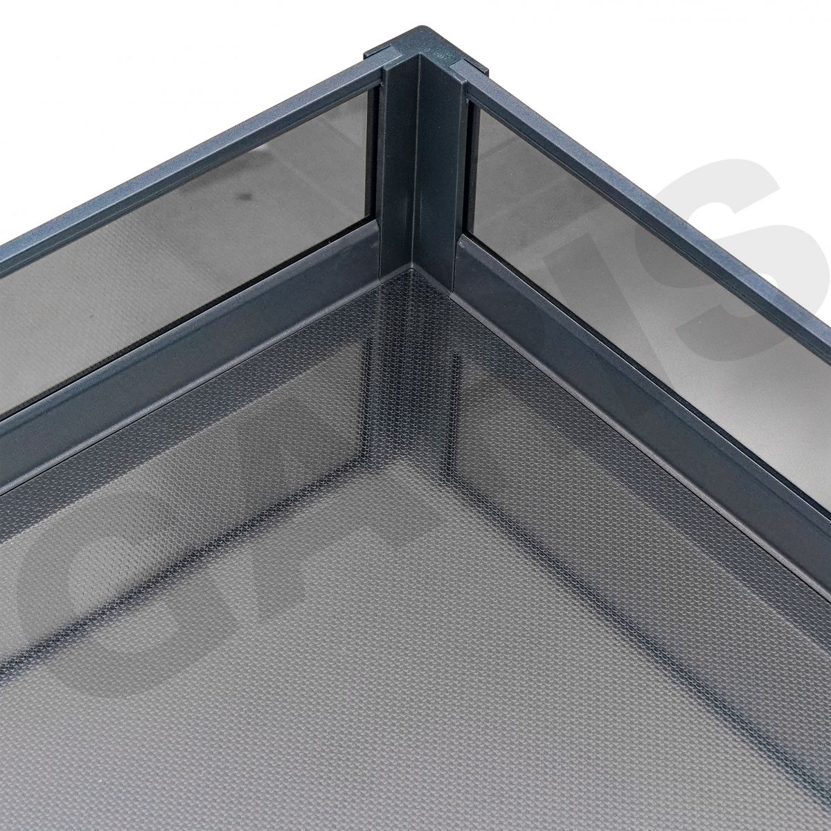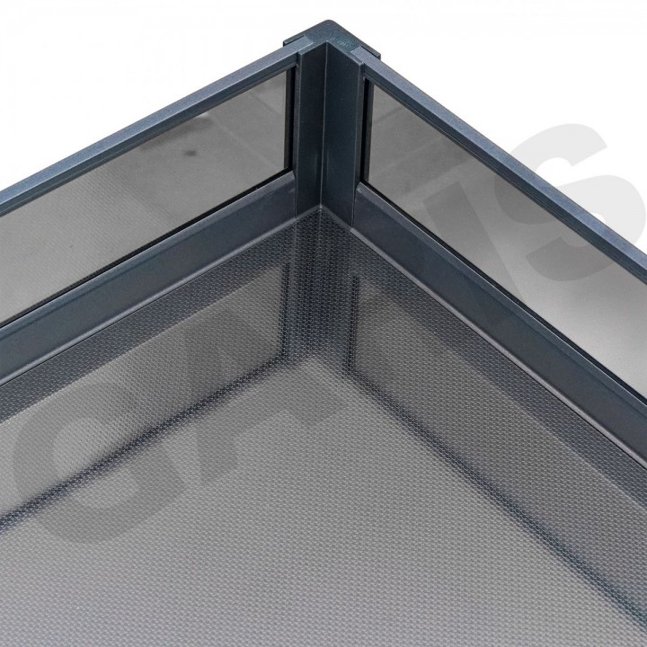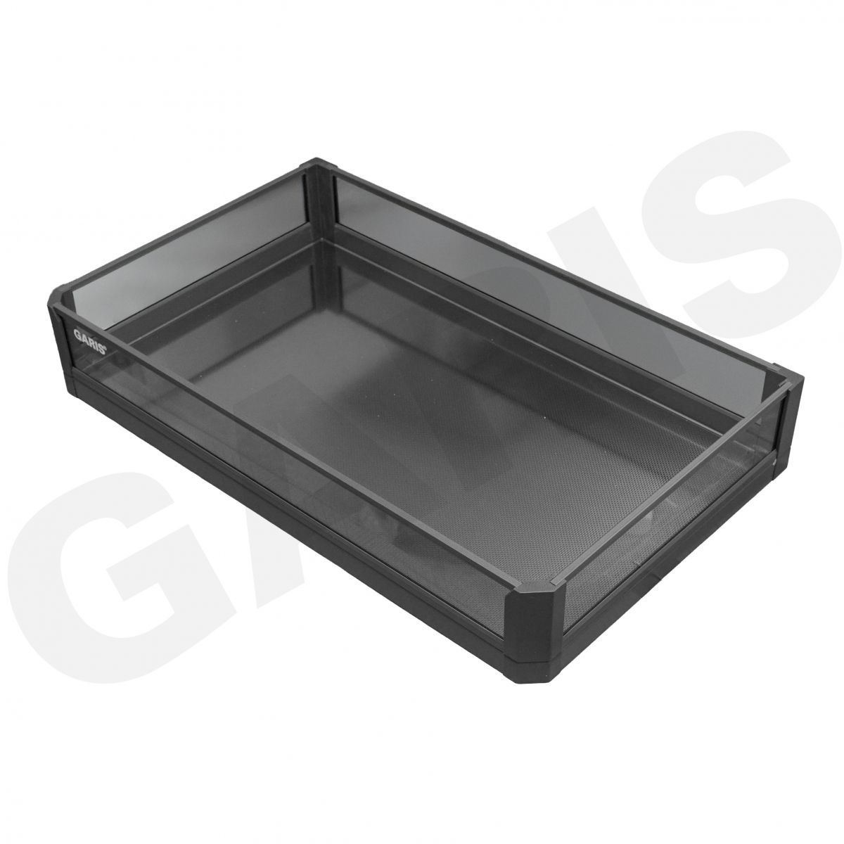 Đáy inox, vách kính bo viền nhôm, kính tối màuTải trọng 42kg (06 rổ bé x 2kg, 06 rổ to x 5kg)