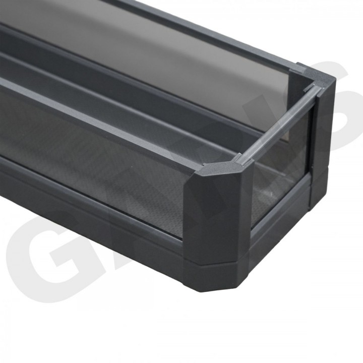 Tủ đồ khô 6 tầng, khay nhôm vách kính, cánh mở GS6.60D Đáy inox, vách kính bo viền nhôm, kính tối màu. Sử dụng 2 ray âm giảm chấn, êm ái, ổn định, tính bền bỉ cao, chịu tải lớn, lắp được cho cánh mở trái hoặc mở phải.