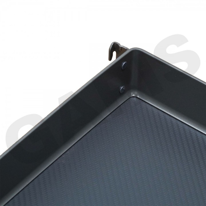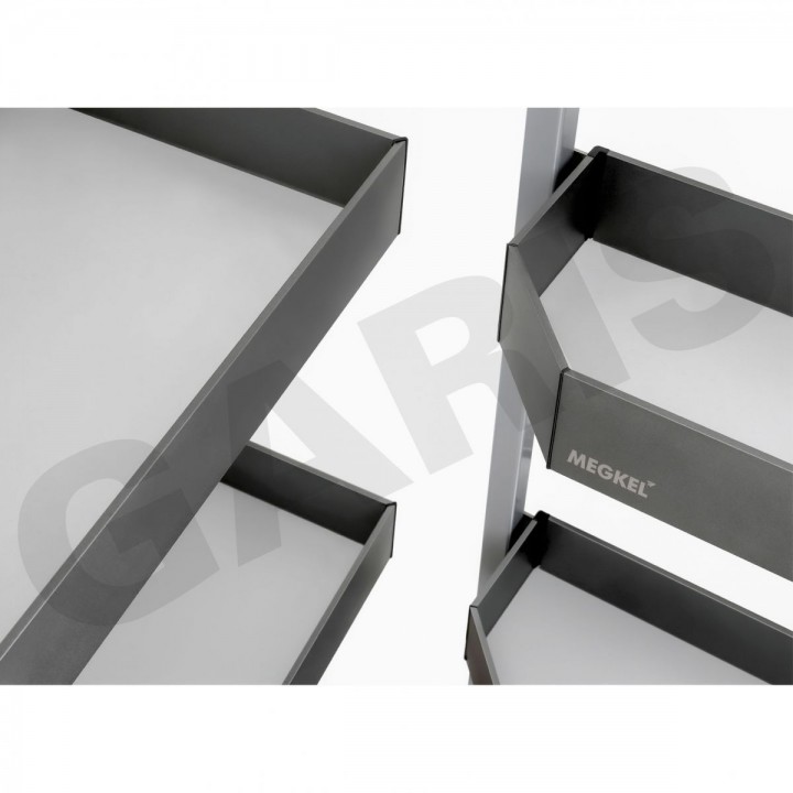 - Tủ được trang bị khay nhôm phủ fluorocarbon, màu xám bạc. Khay nhôm không chỉ tạo nên vẻ đẹp và sự sang trọng cho tủ, mà còn có khả năng chống ăn mòn và chịu được trọng lượng lớn. Màu xám bạc cũng tạo điểm nhấn và phù hợp với nhiều phong cách trang trí nội thất.