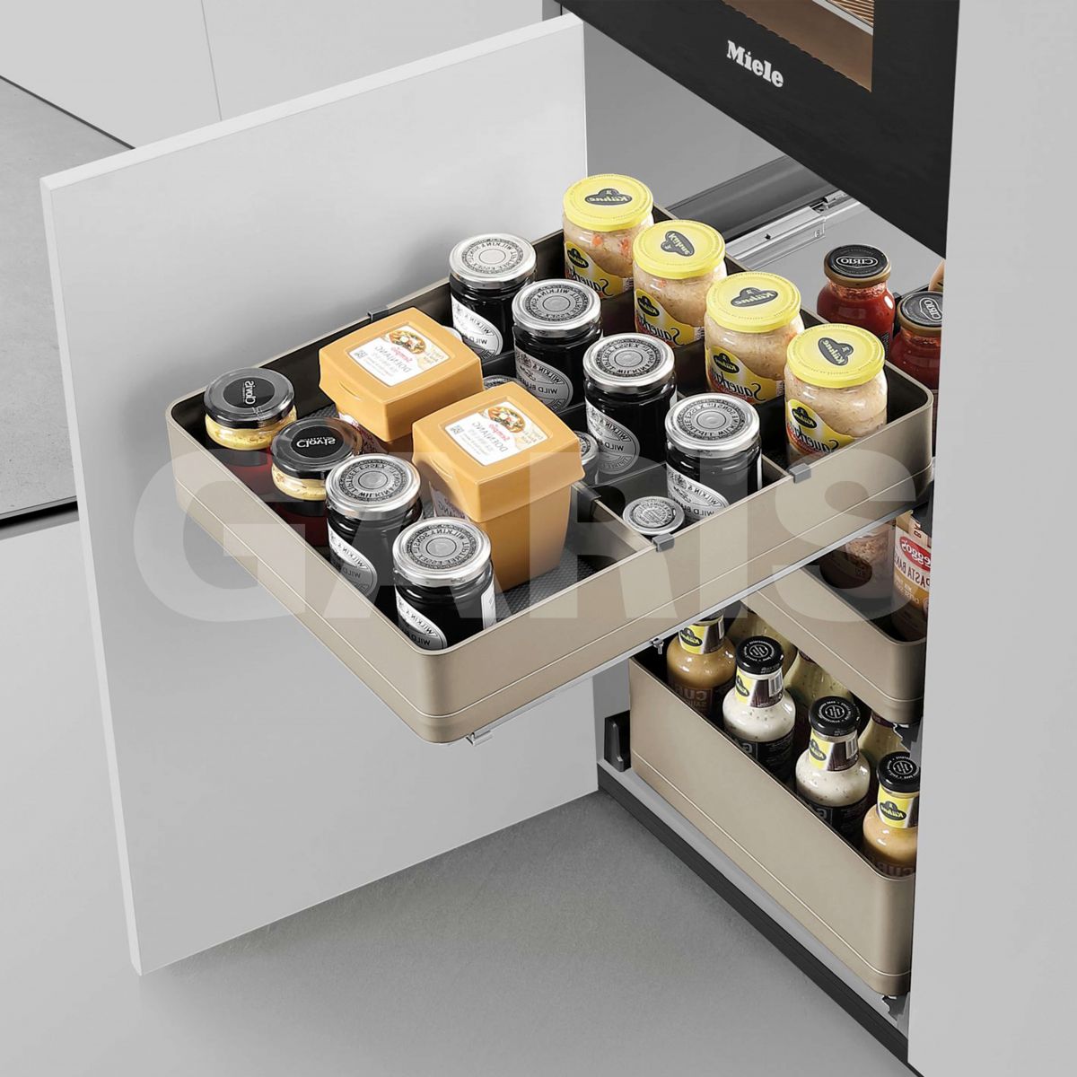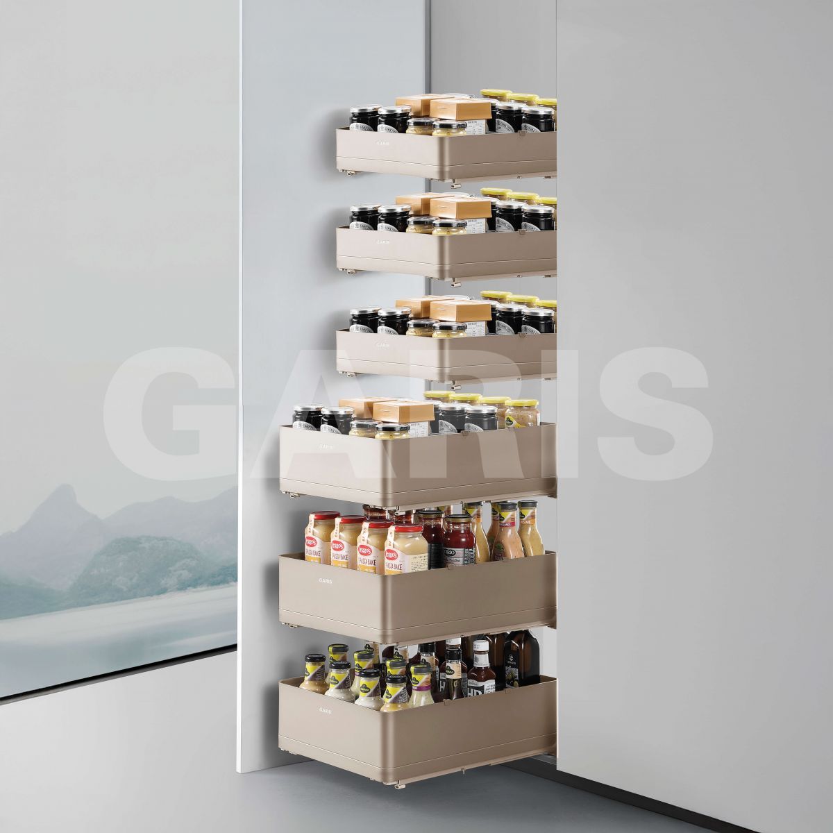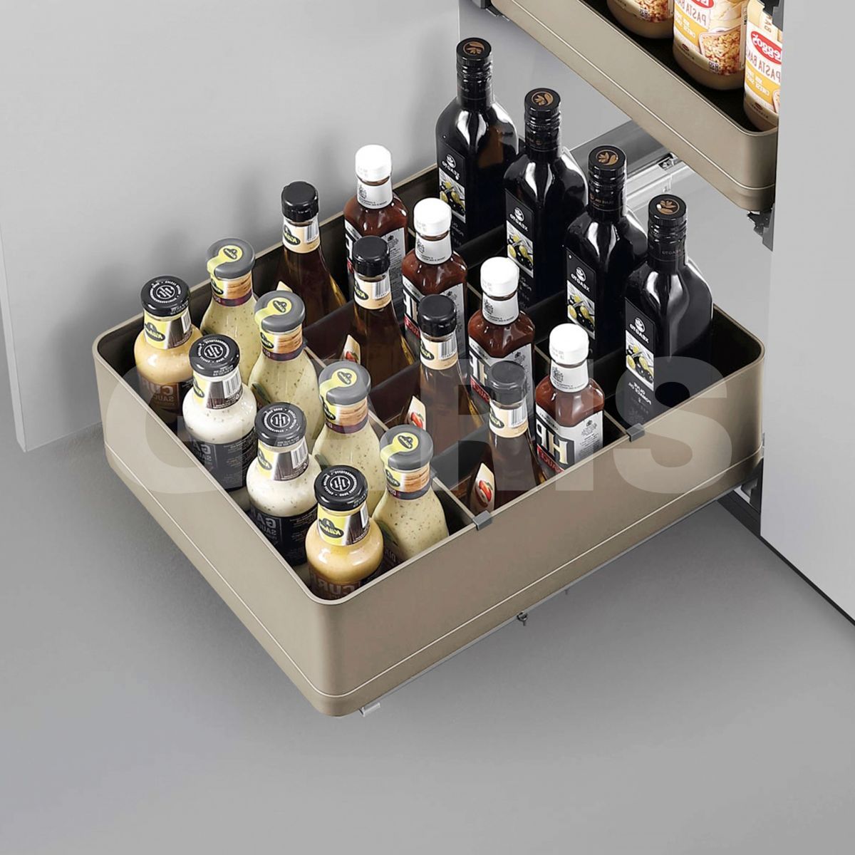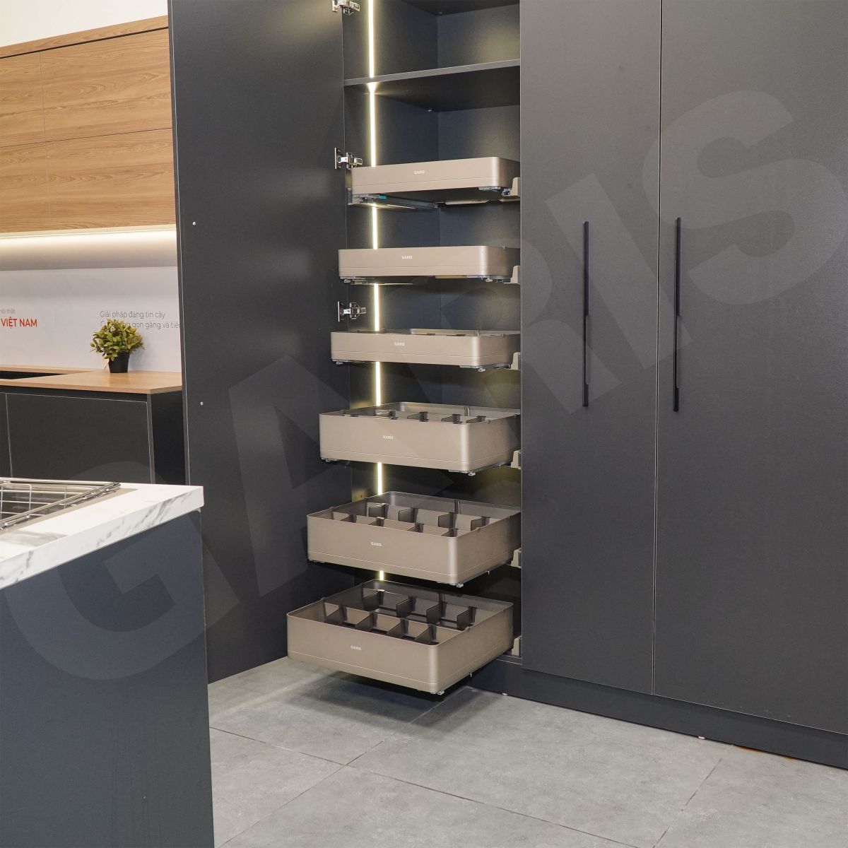 Tuỳ nhu cầu sử dụng, có thể kết hợp nhiều ngăn kéo thành tủ đồ khô nhiều tầng.Rổ bằng nhôm hàng không AA màu Champagne Rose