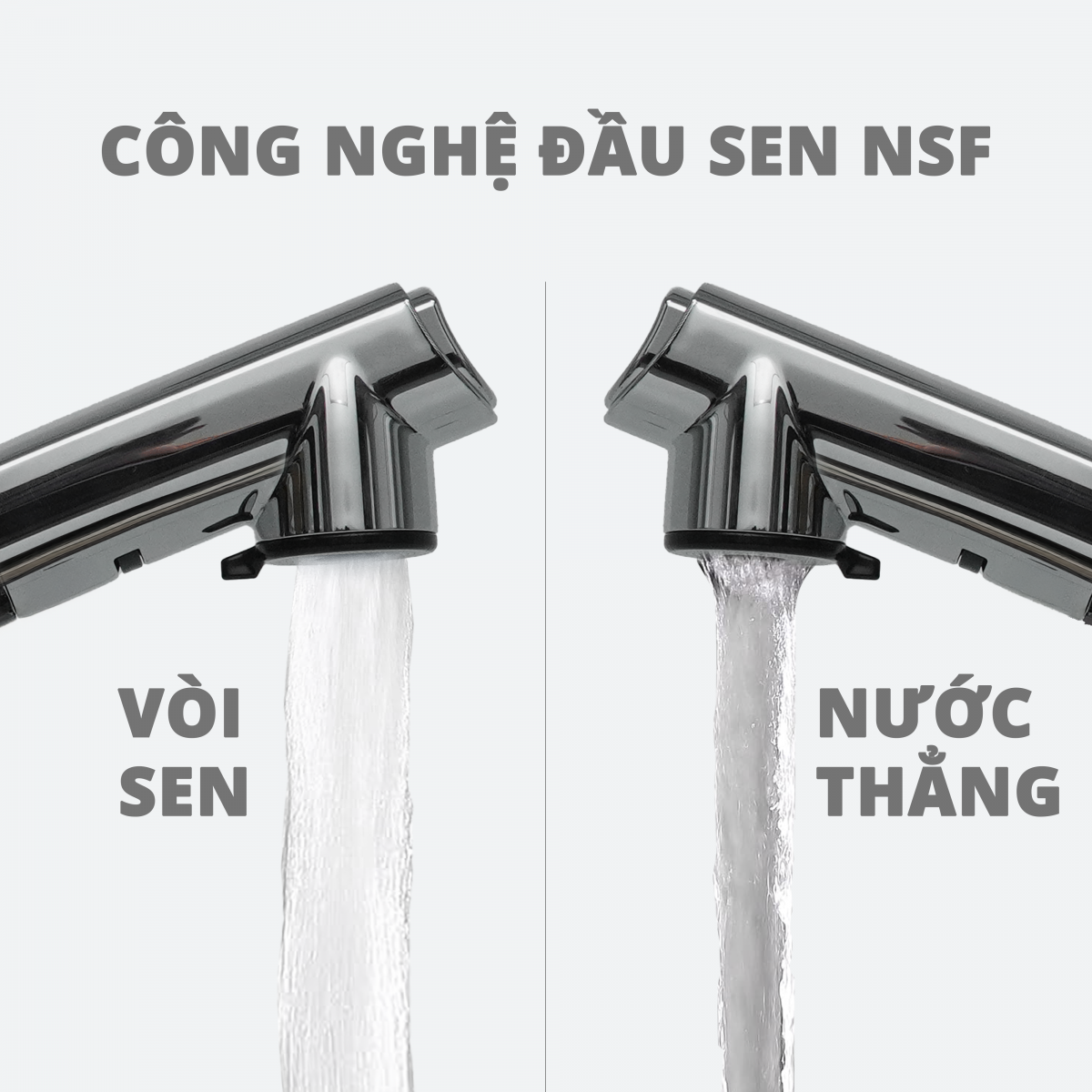 | - Công nghệ đầu sen NSF dựa trên công nghệ tạo bọt nước tiên tiến mang lại cảm giác nhẹ nhàng của nước khi tiếp xúc với tay mà vẫn đảm bảo áp lực nước mạnh - Xoay 360 độ rất linh hoạt |