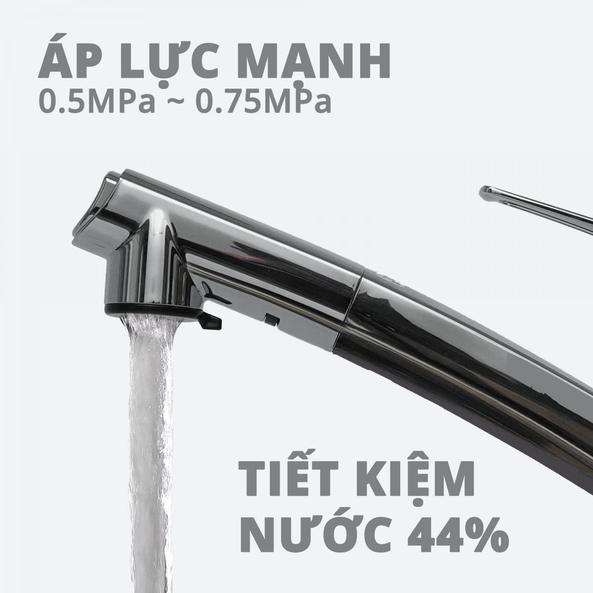 | Chế độ xả: 2 chế độ, gồm xả dòng hoặc xả tia sen trộn bọt khí, giúp tiết kiệm nước và ít tia nước bắn, hạt mịn không bị bắn khi sử dụng, giúp loại bỏ bụi bẩn khỏi đồ vật dễ dàng hơn. Đầu lọc sen có kết cấu mịn nên khi chạm vào nước có cảm giác dễ chịu và không bị bắn nước |