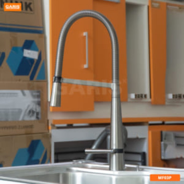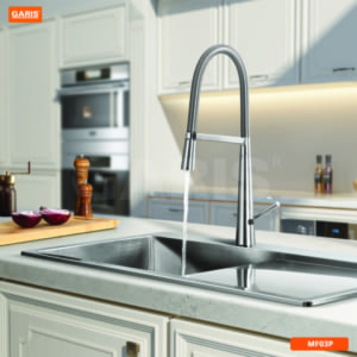 Vòi rửa MF03P duy nhất tại Việt Nam dùng đồng thời 3 linh kiện của các hãng trứ danh trên thế giới: đầu vòi và dây cấp Neoperl (Thụy Sỹ), lõi trộn nóng lạnh Sedal (Tây Ban Nha), chịu nhiệt độ 140ºC trong thời gian dài.Dây cấp Neoperl chống xoắn, chịu nhiệt độ 140ºC, phủ chất CS chống bám bẩn và inliner chống chất có hại như Clotamin và Clorua trong nước.