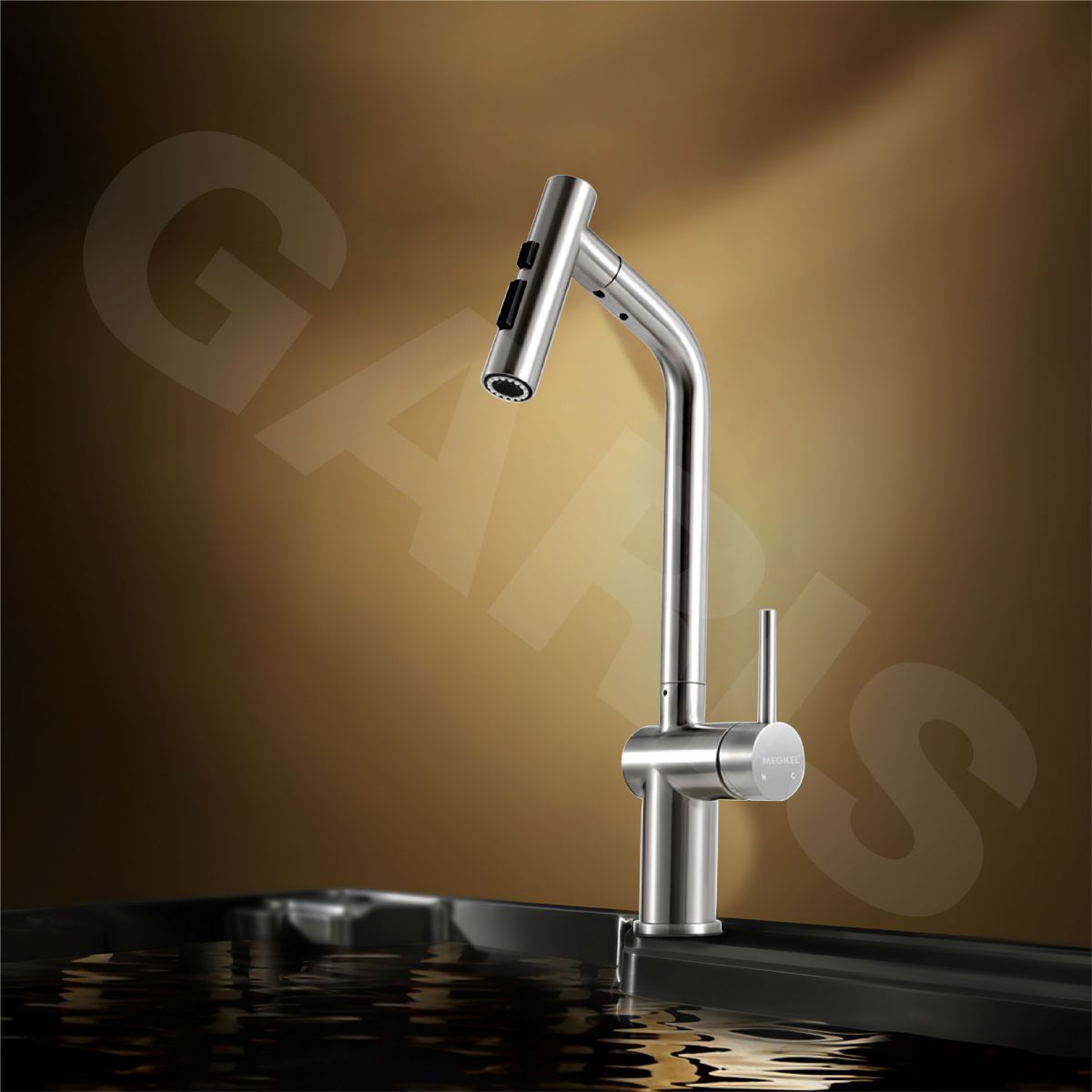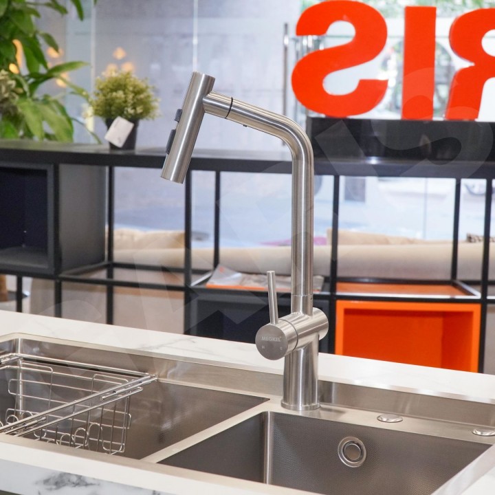 Vòi chậu rửa bát có dây rút,Inox 304, đánh bóng xước mờ